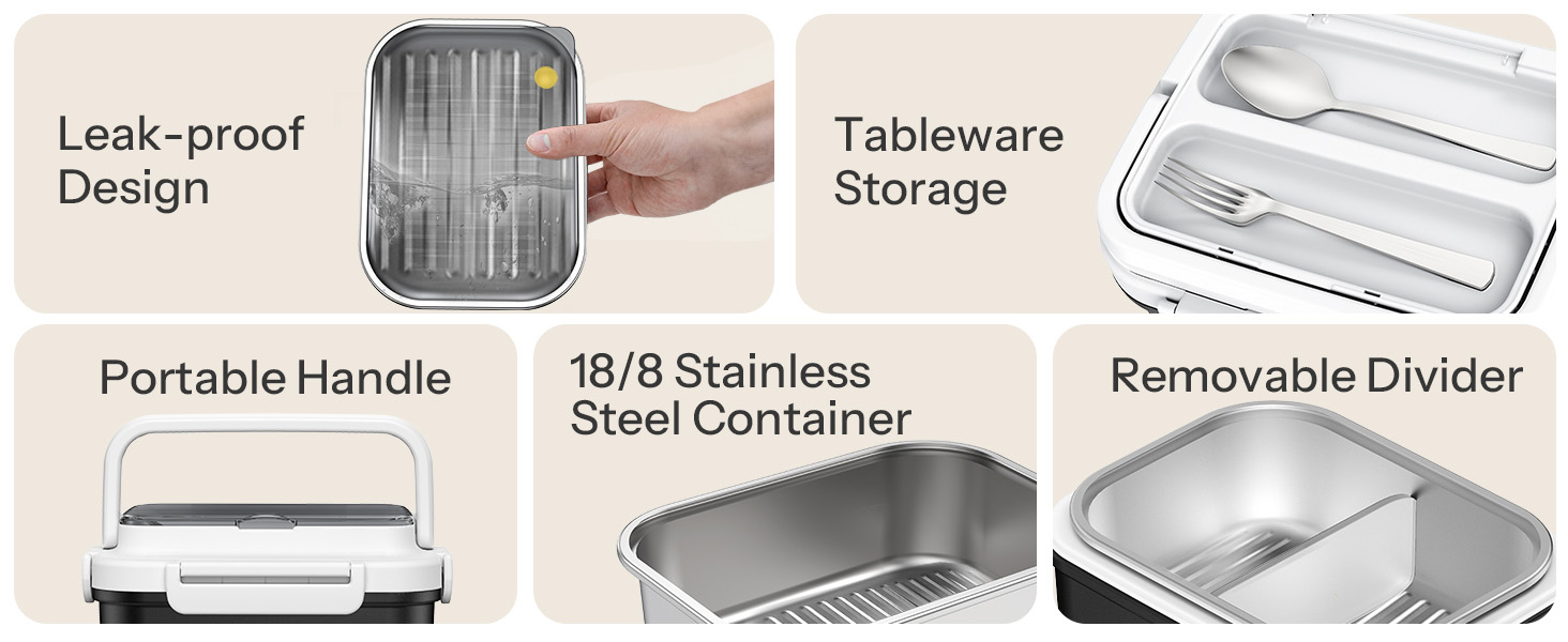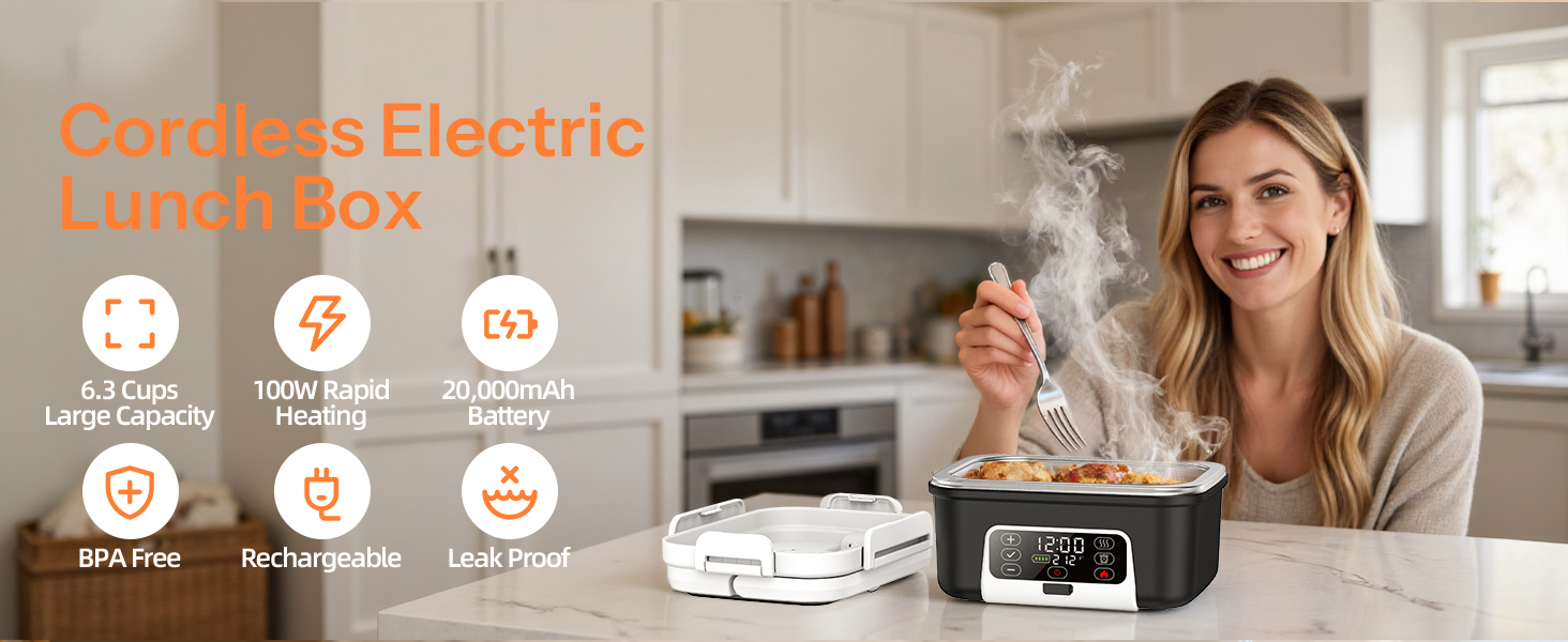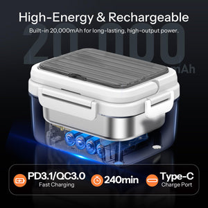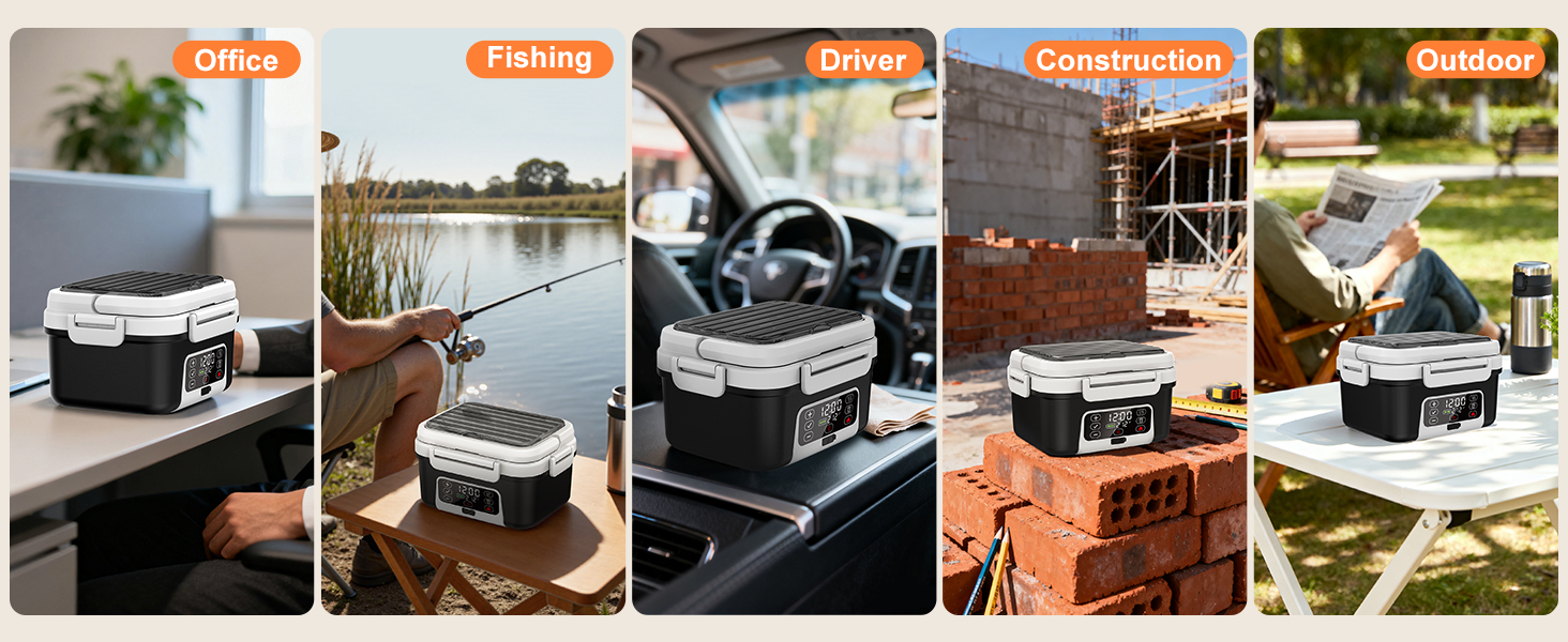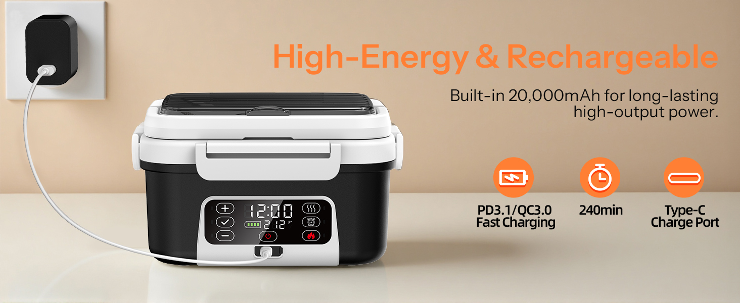 Designed for work sites, travel, and areas without a microwave, this portable lunch box uses a 20000mAh battery to warm meals conveniently whenever needed.
