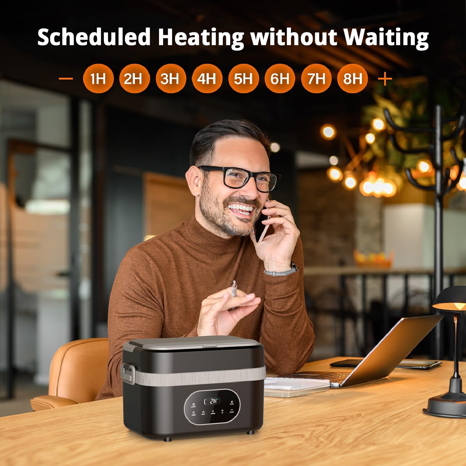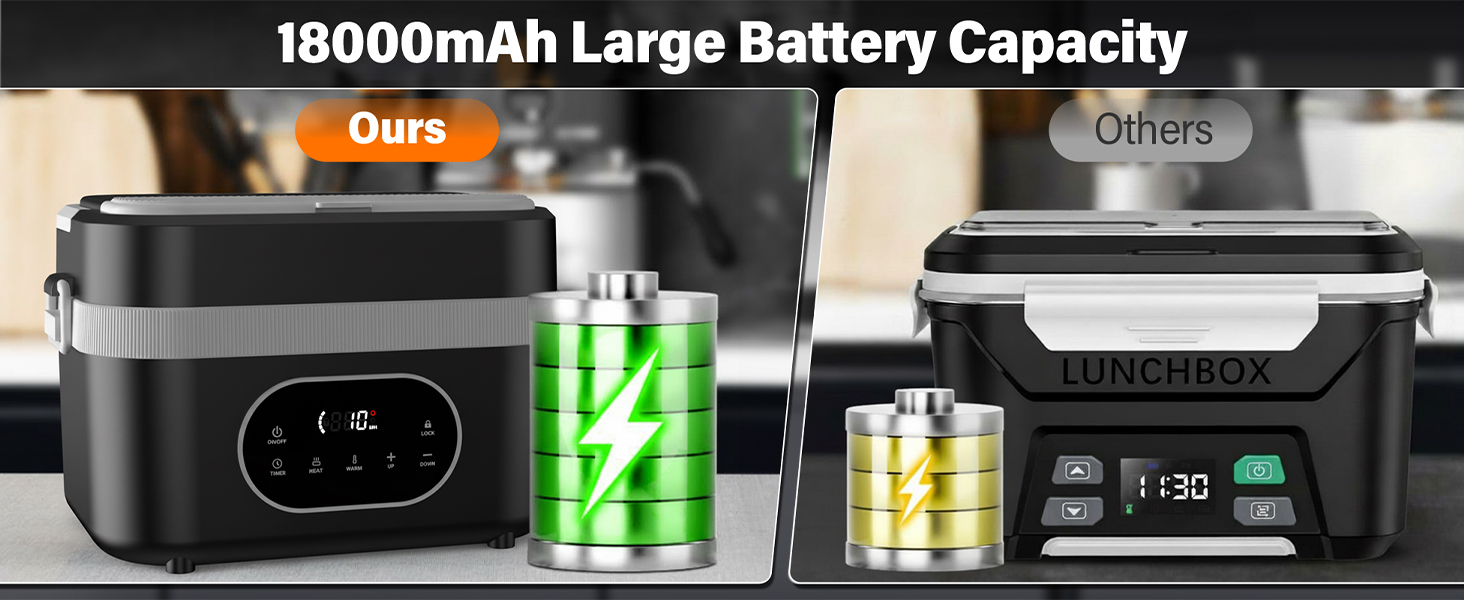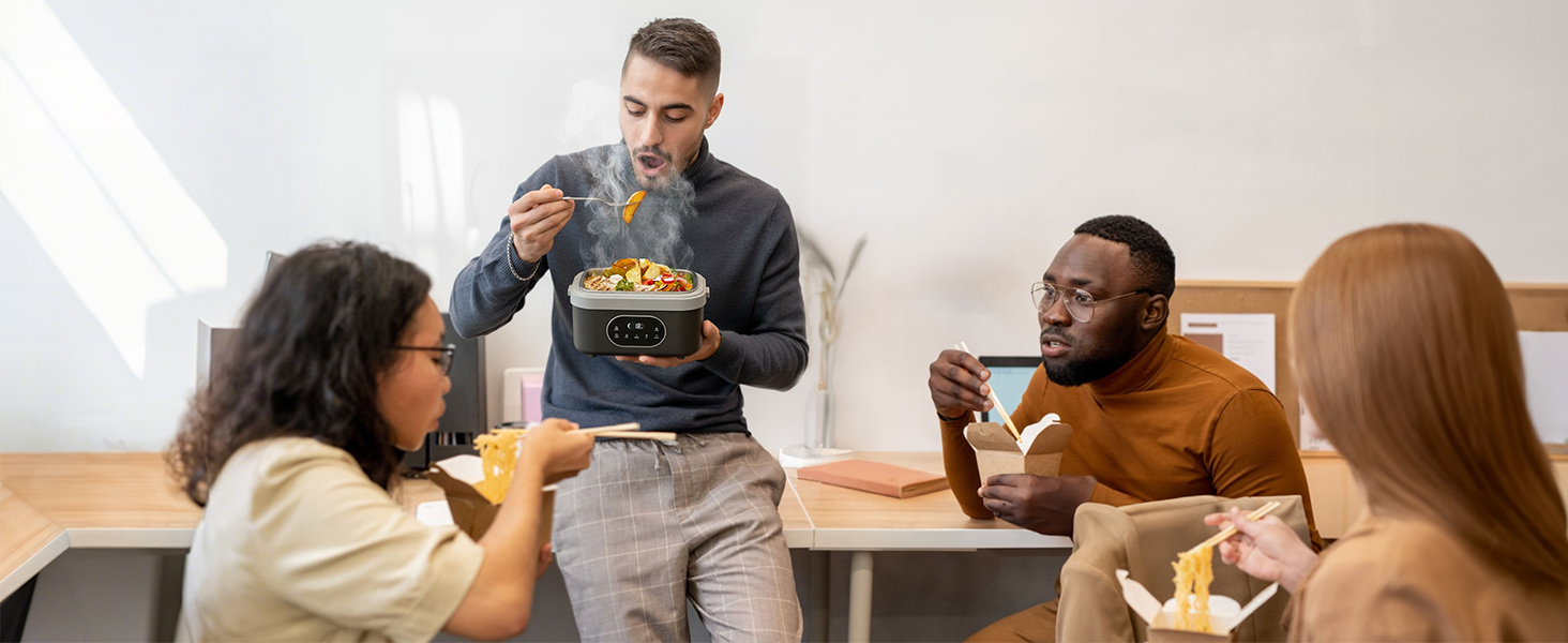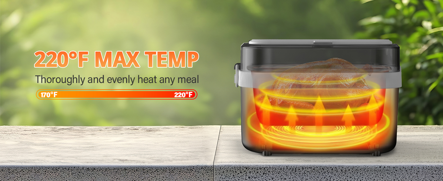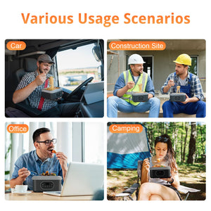 Offers 360° consistent heating powered by a built-in battery, helping meals warm evenly while maintaining moisture and flavor—suitable for office breaks, job sites, or outdoor dining.