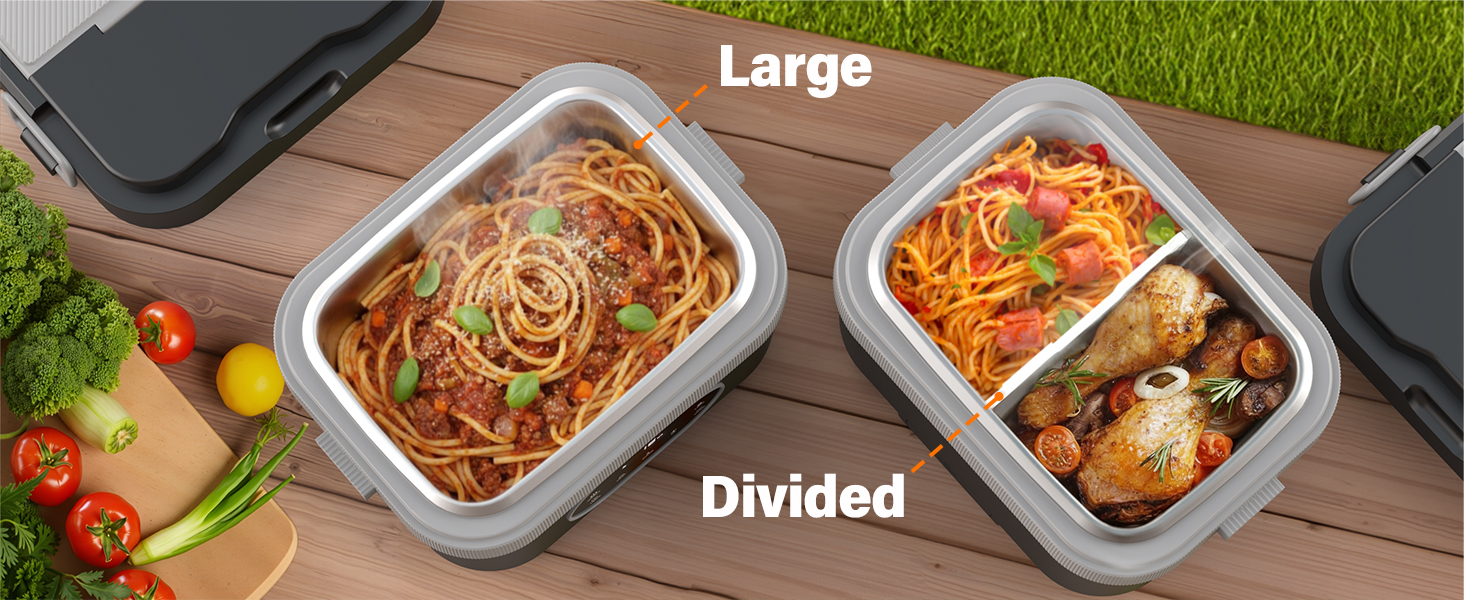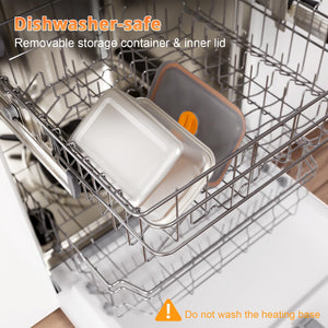 Built with a touch-control LED panel and dual-lock structure to prevent accidental activation or spills. The stainless steel container, lid, utensils, and divider are dishwasher-safe for easy cleaning.
