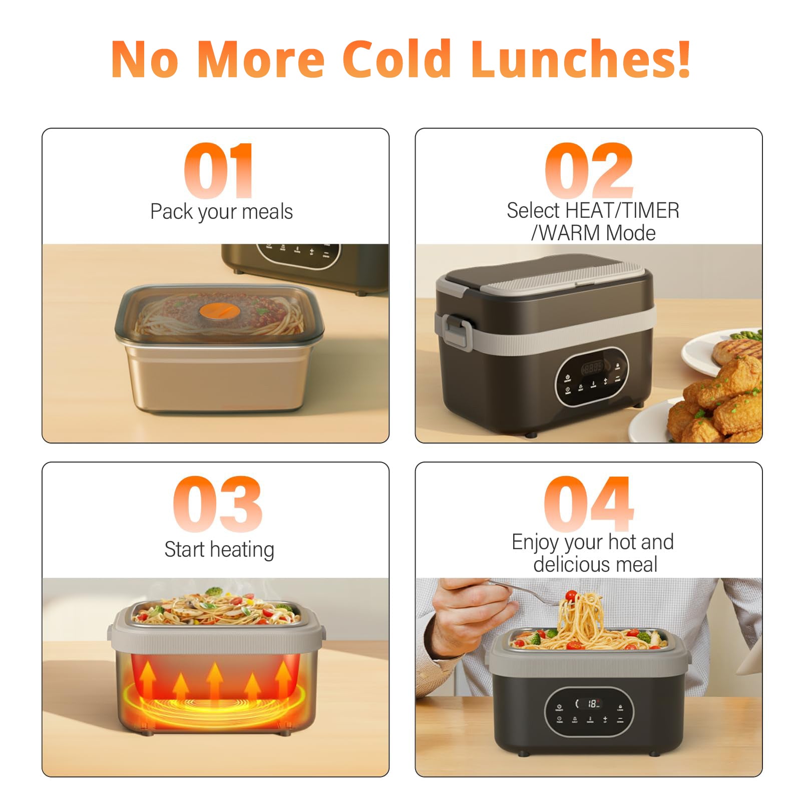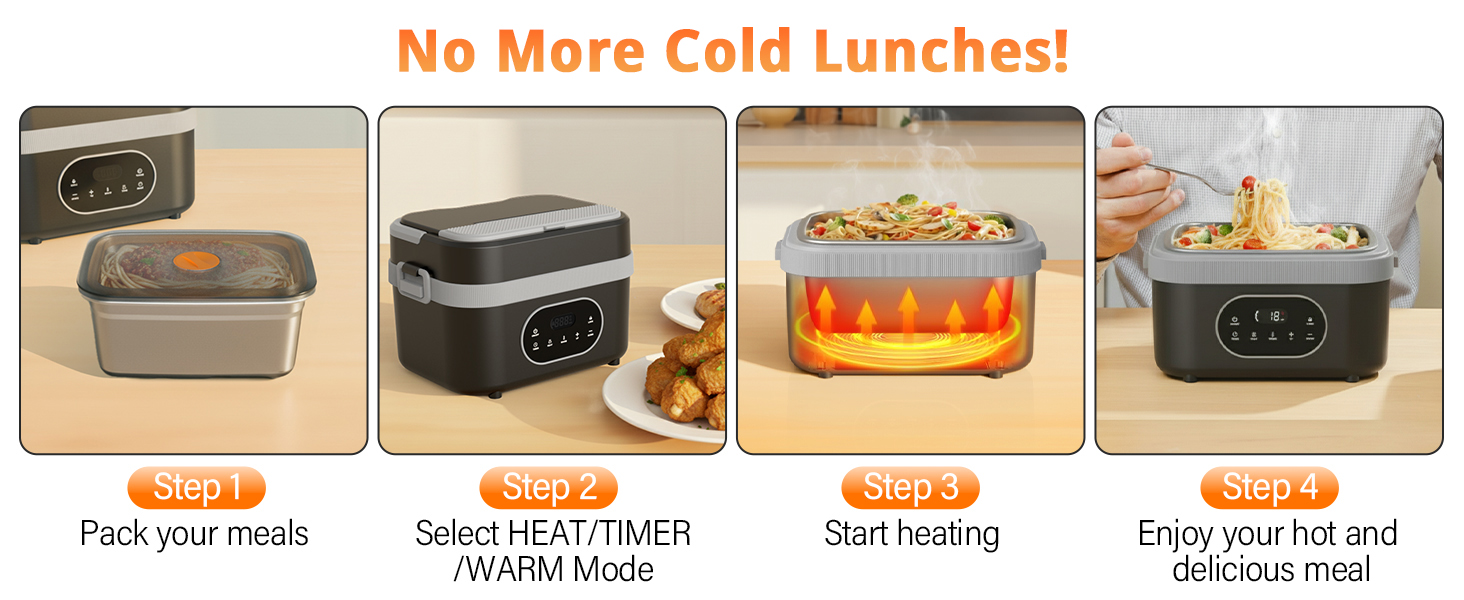 Rechargeable Heated Lunch Box with Timer Function