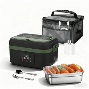 This cordless electric lunch box runs on a built-in 16000mAh rechargeable battery and comes with a 1L stainless steel container and an insulated carrying bag. It’s designed for commuters, office workers, and anyone who needs a hot meal on the go. With a built-in timer and adjustable heating settings, it lets you warm your food quickly and conveniently wherever you are.