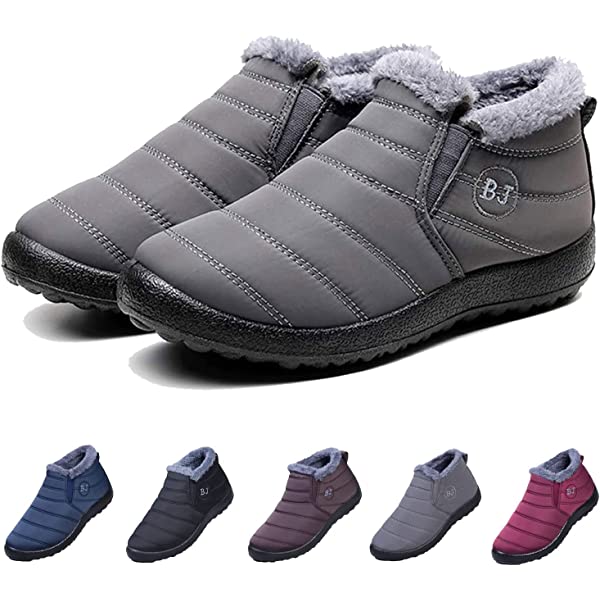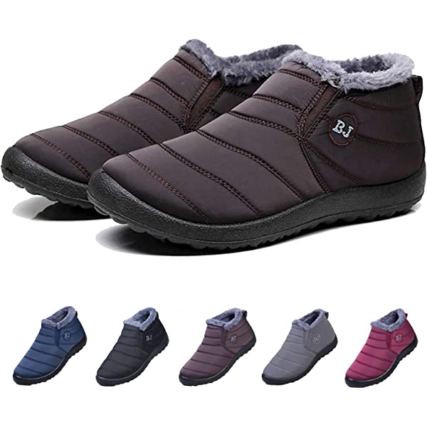Boojoy Winter Boots, Winter Warm Anti-slip Waterproof on Outdoor Ankle Booties, Waterproof Slip on Outdoor Fur Lined Snow Shoes for Women and men