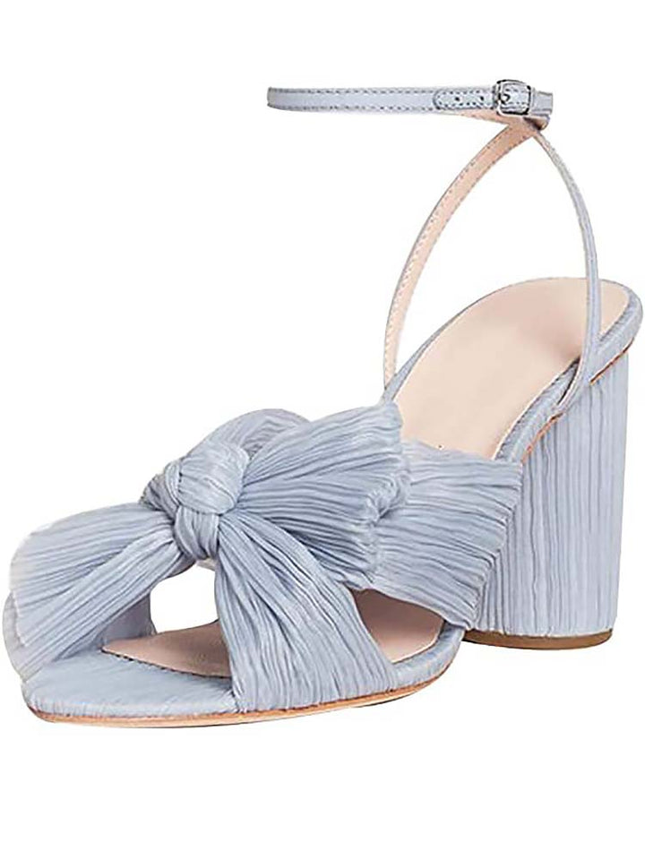 FASHION SANDALS: Minimalist pleated bow and cylindrical heel elevate your outfits for almost every occasion from prom to dating.