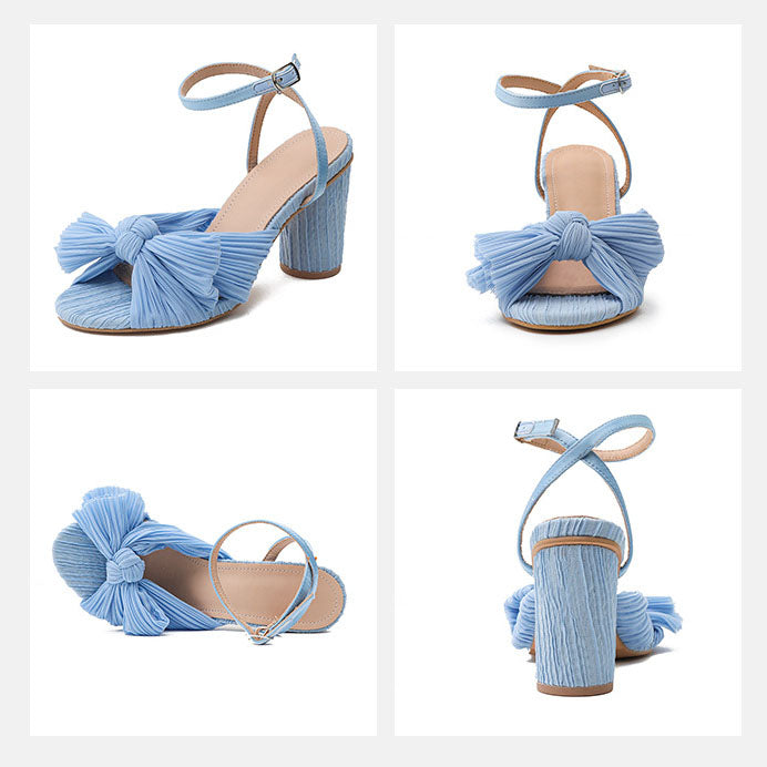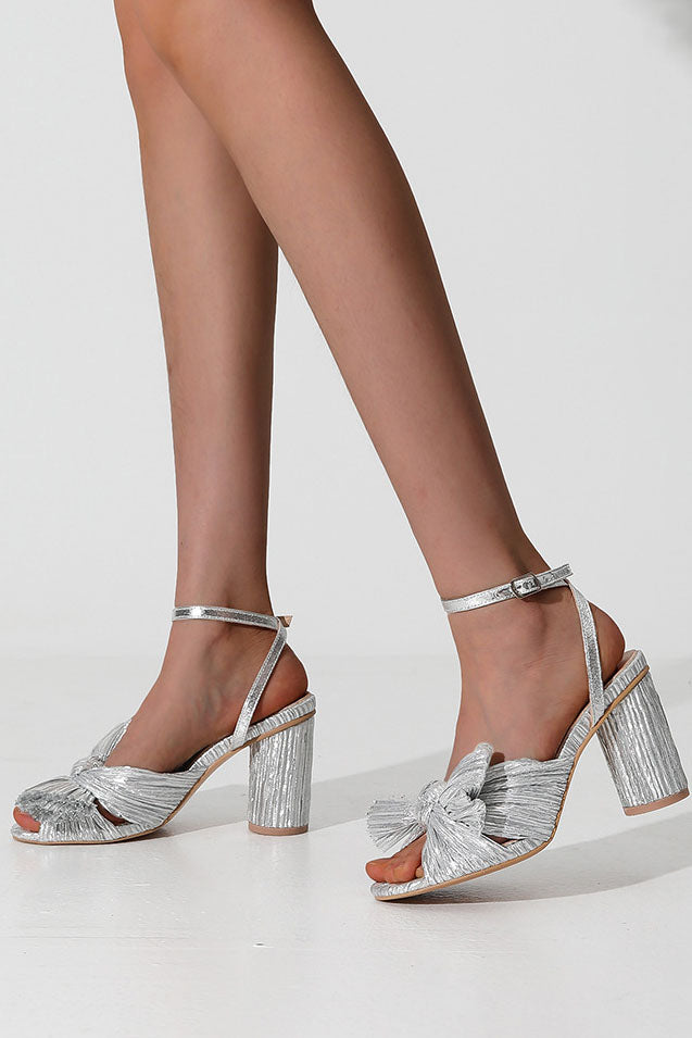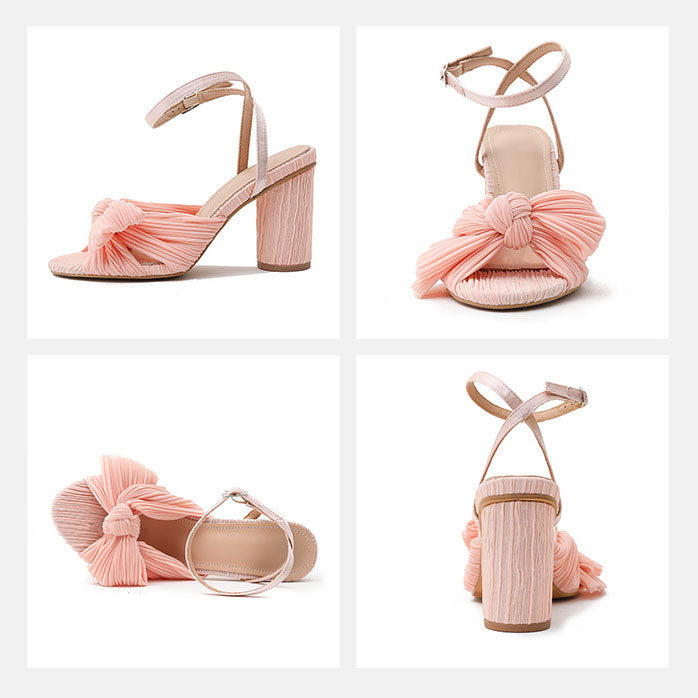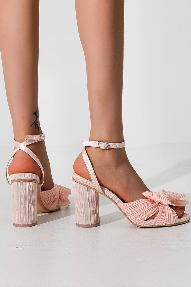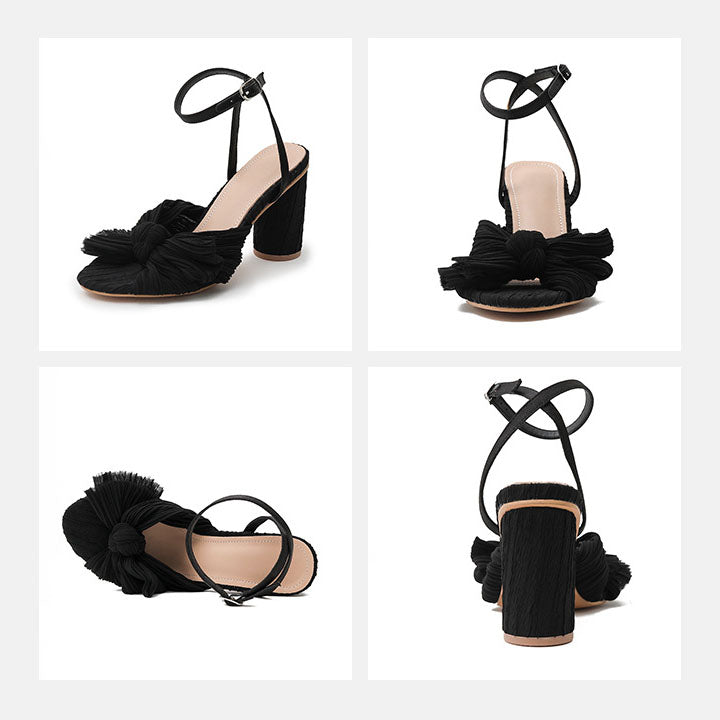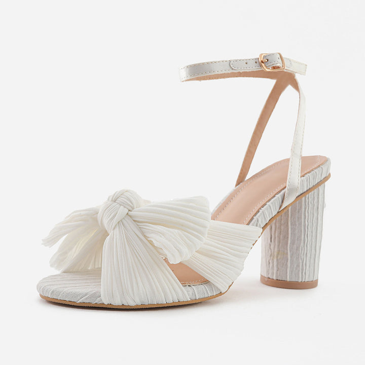 FASHION SANDALS: Minimalist pleated bow and cylindrical heel elevate your outfits for almost every occasion from prom to dating.