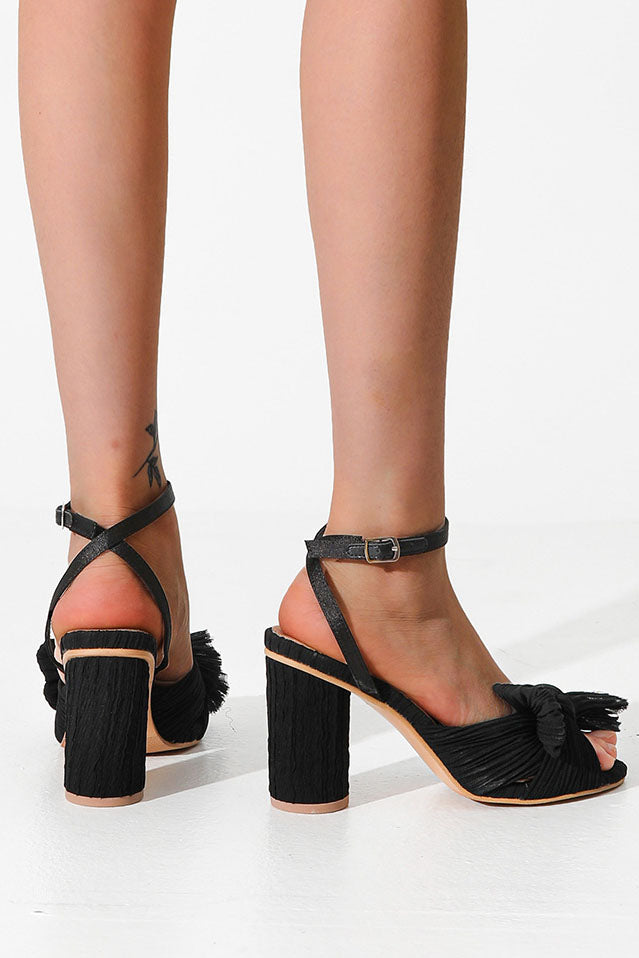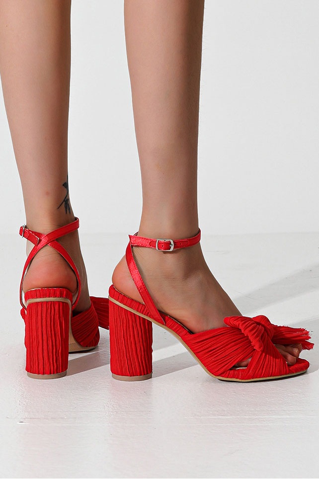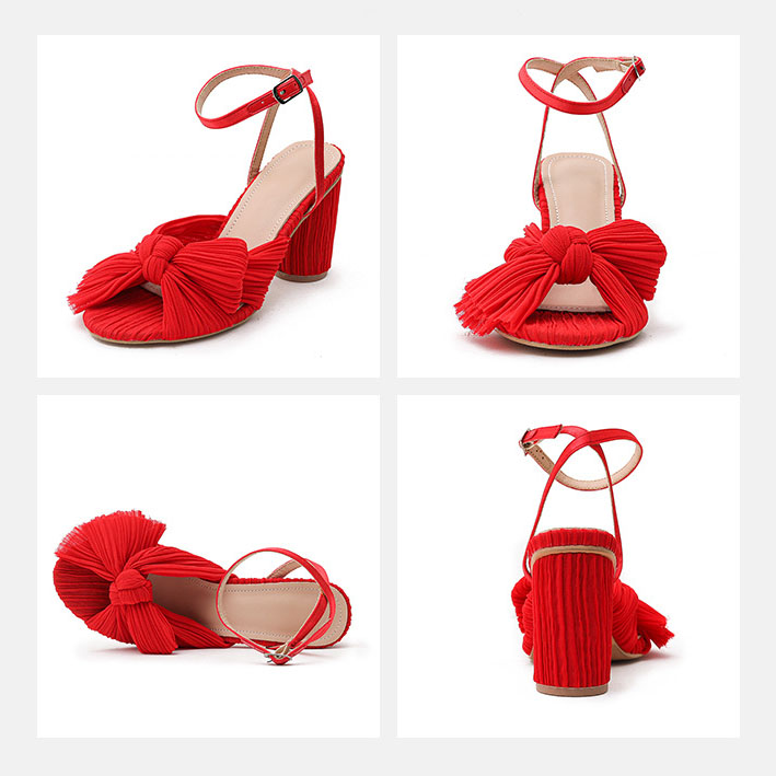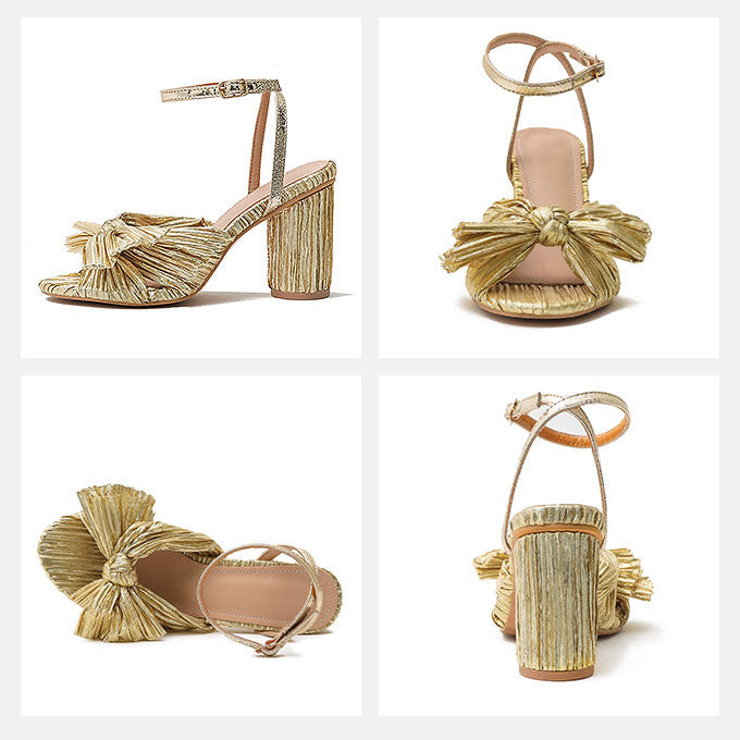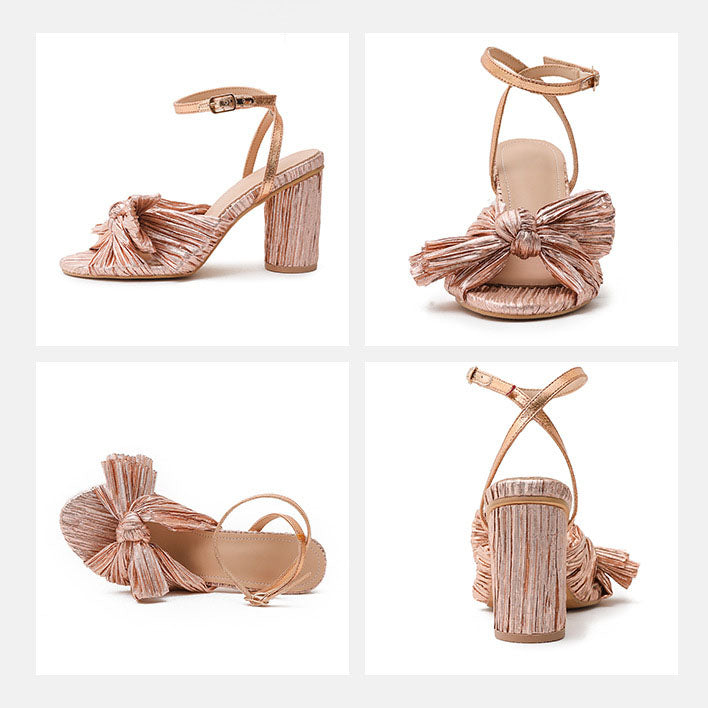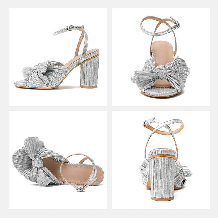 FASHION SANDALS: Minimalist pleated bow and cylindrical heel elevate your outfits for almost every occasion from prom to dating.