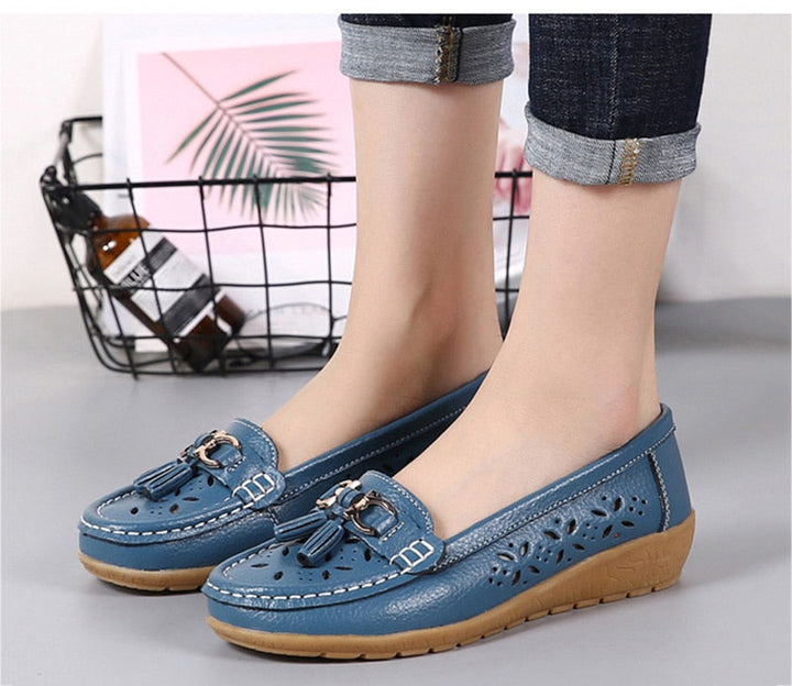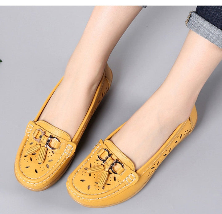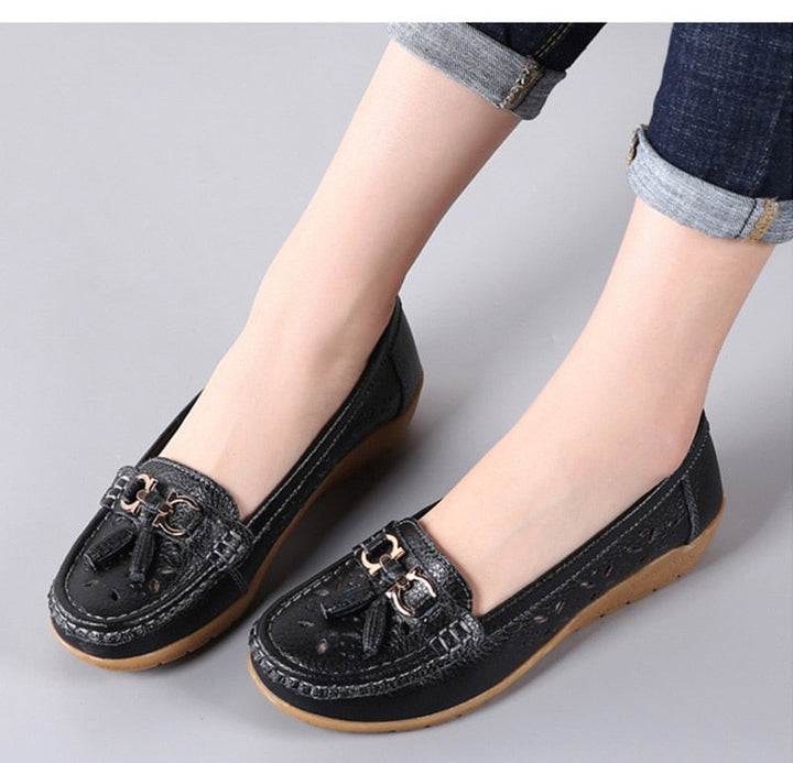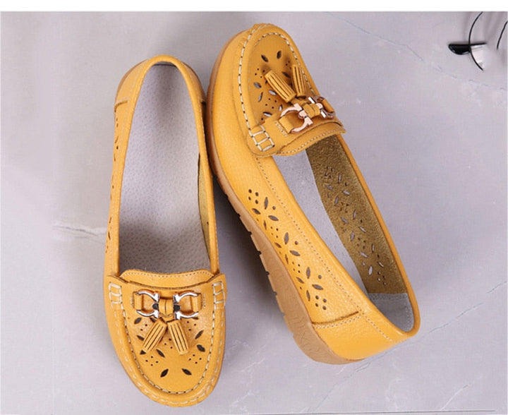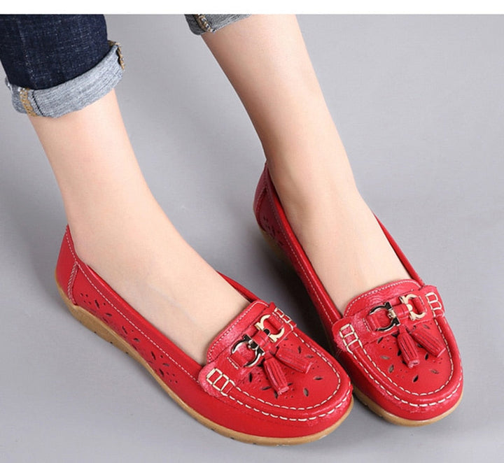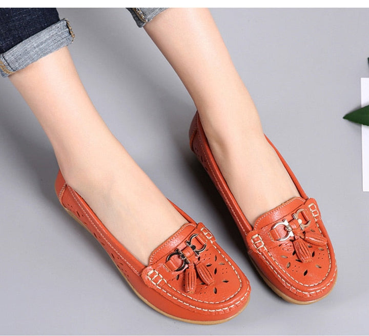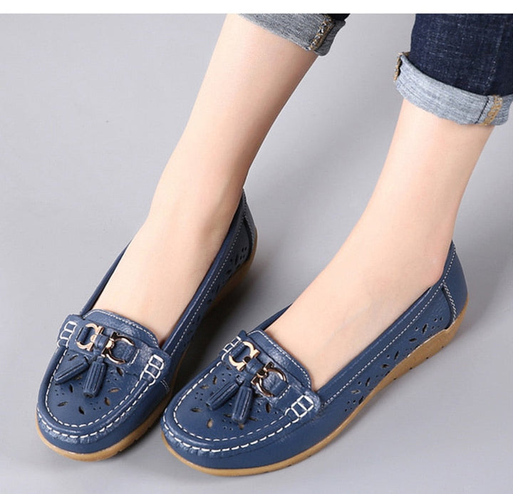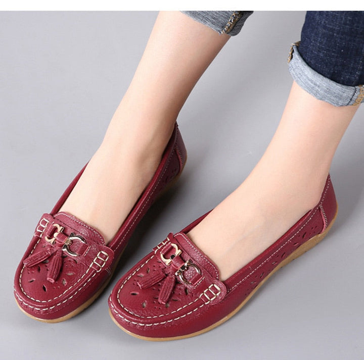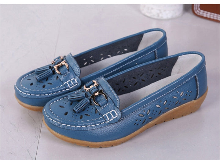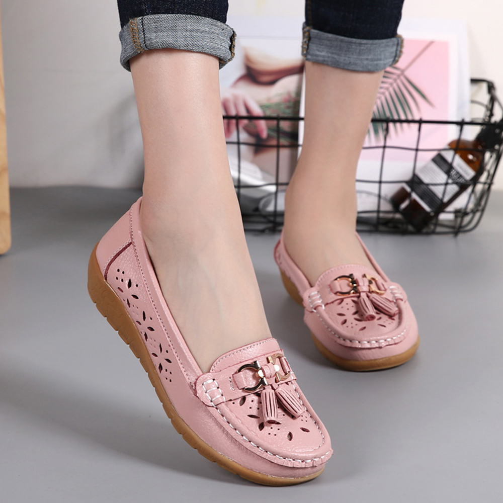Breathable Leather Upper:The upper of the womens loafer is made of high-quality leather material,thanks to the hollow design,the casual slip on shoes has good breathability,suitable for summer and when going out.