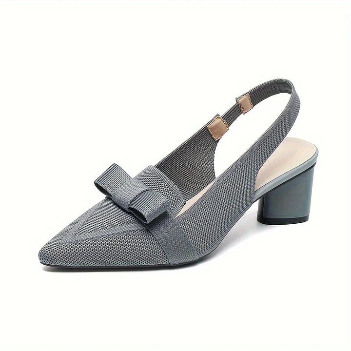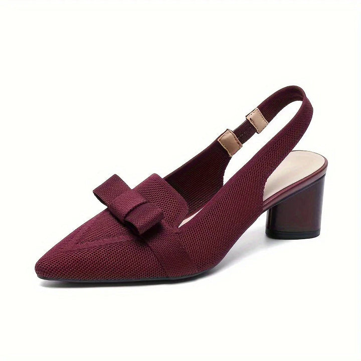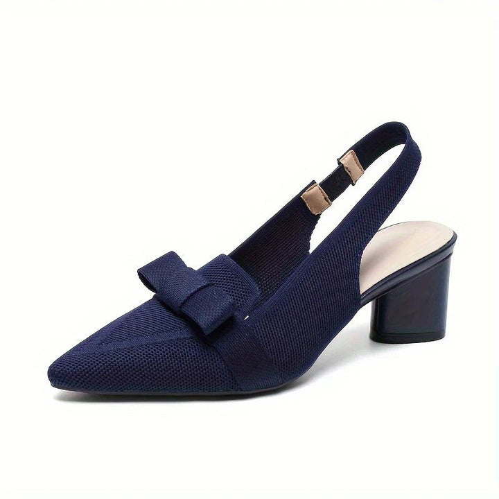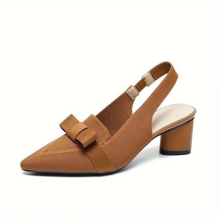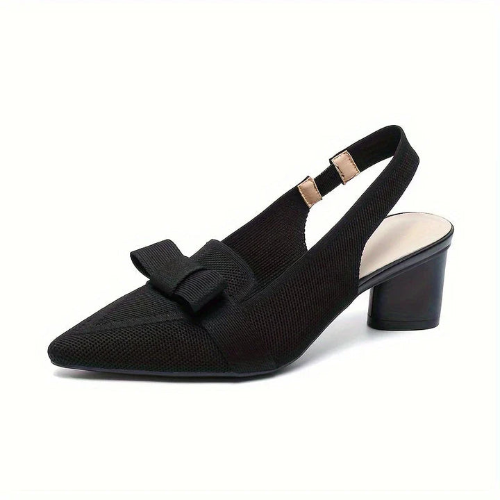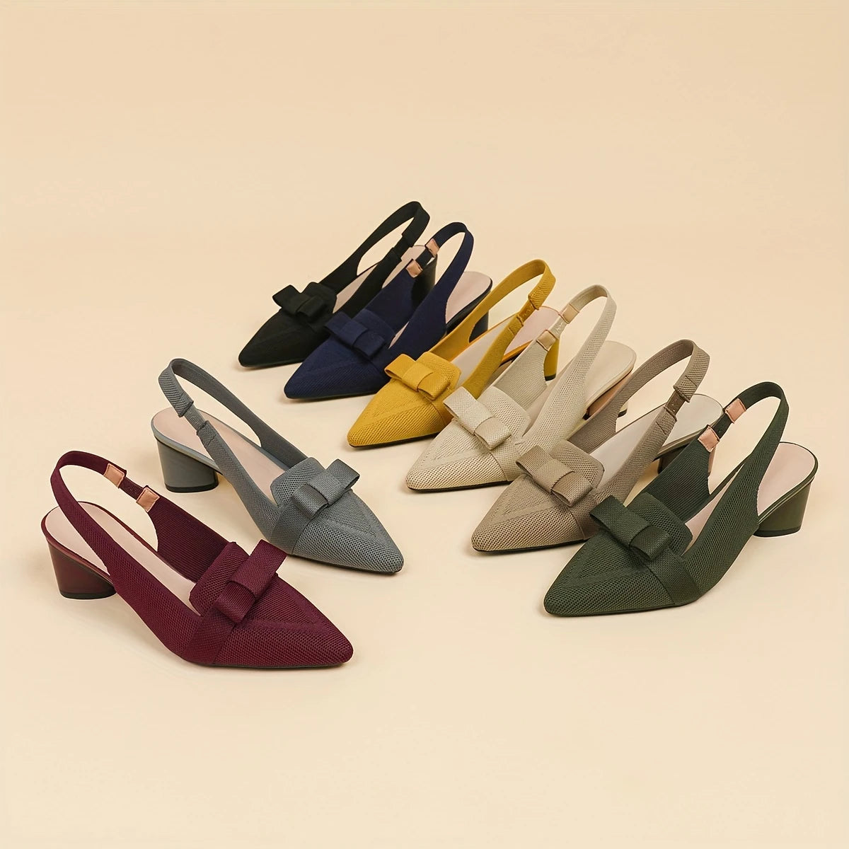 These pointed slingback heels feature a chic bow detail and a comfortable block heel for polished elegance . The mid-height heel provides stability , while the slim slingback strap ensures a secure fit.