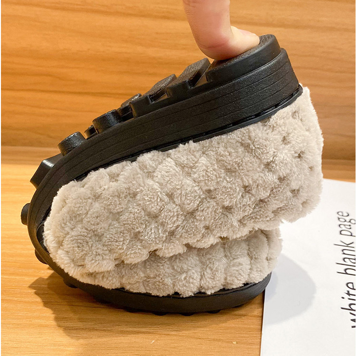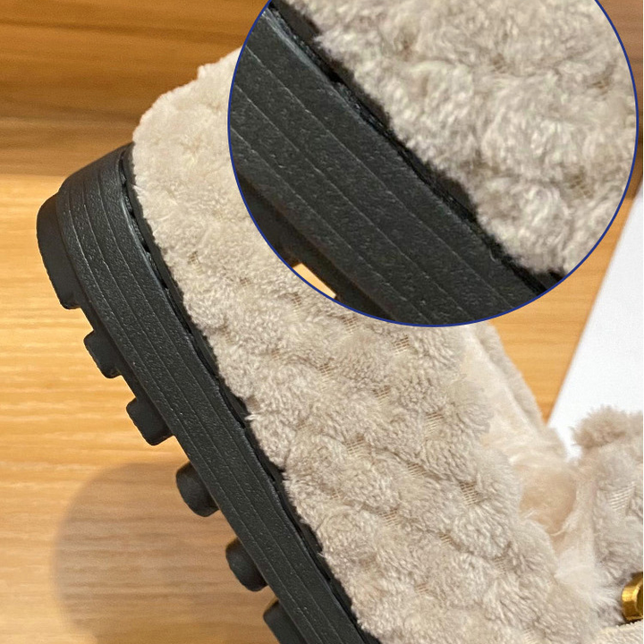 Made of warm furryMaterial with a Soft sole that allows your feet to feel comfy. Spacious wide toe box to allow your feet to stretch and relax. It's perfect for those with bunions or swelling feet as it stretches along with them without any unnecessary rubbing.