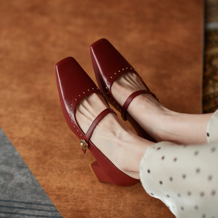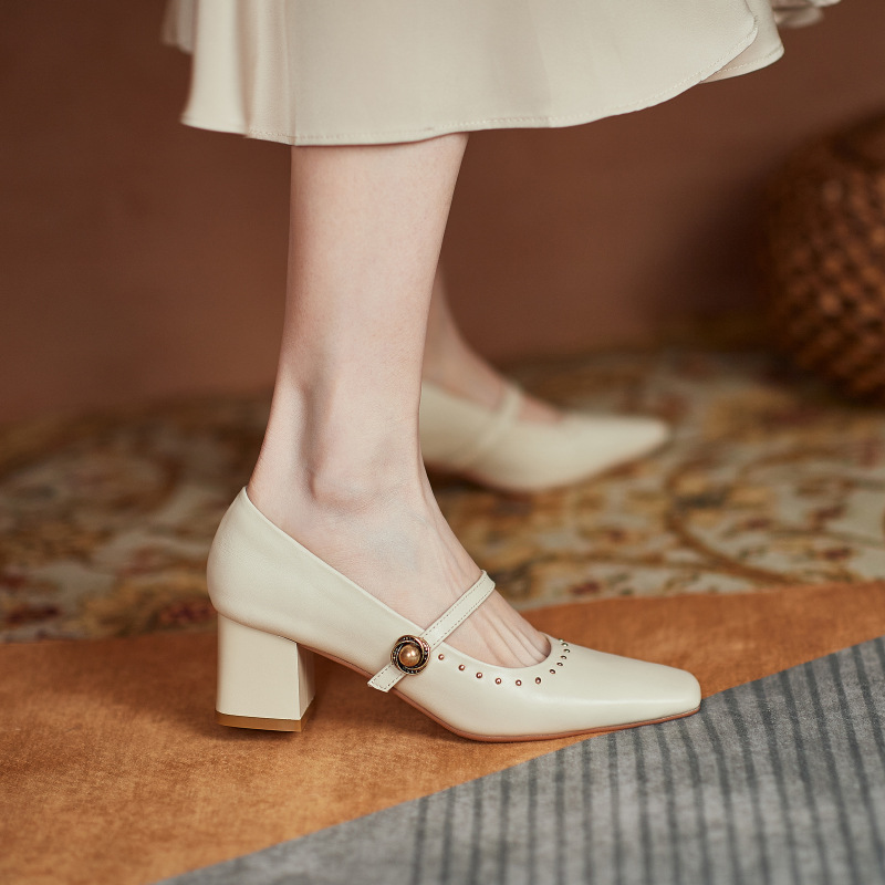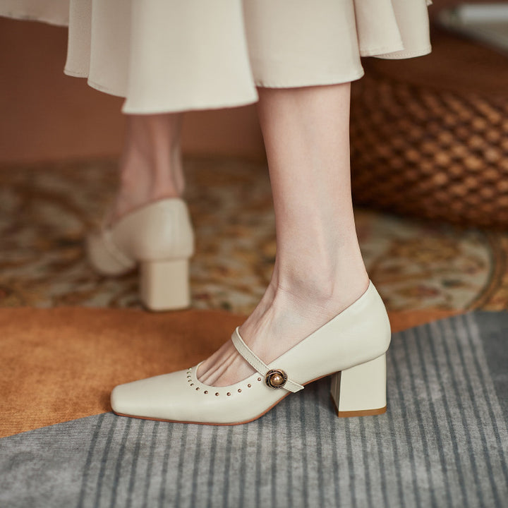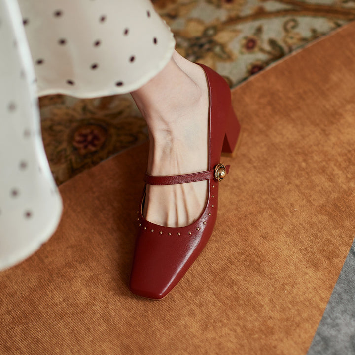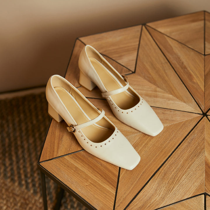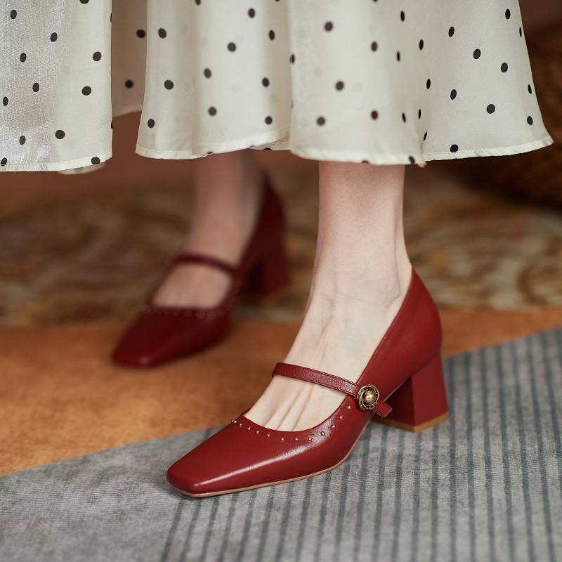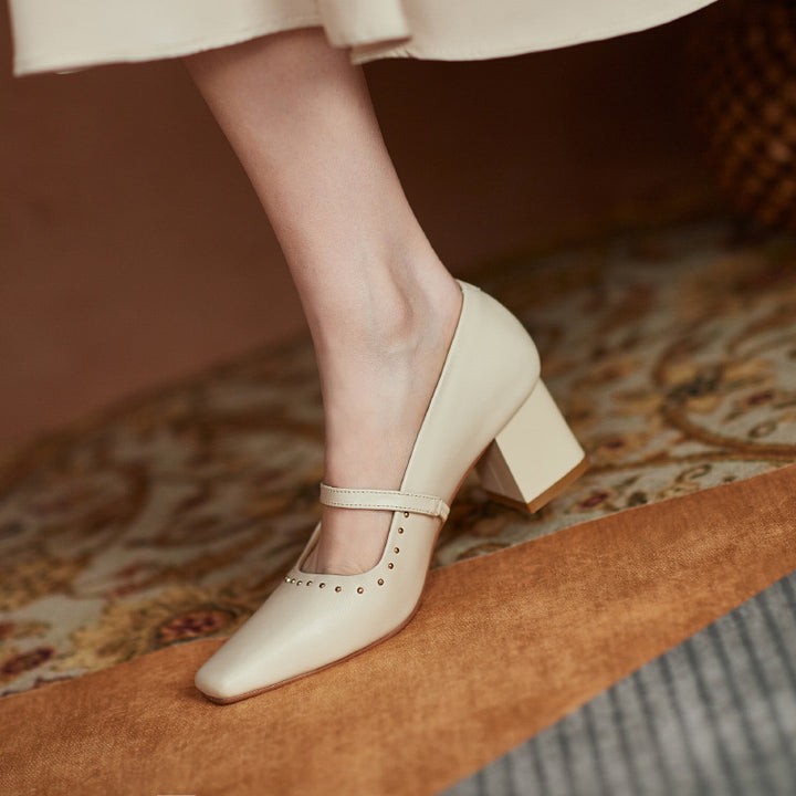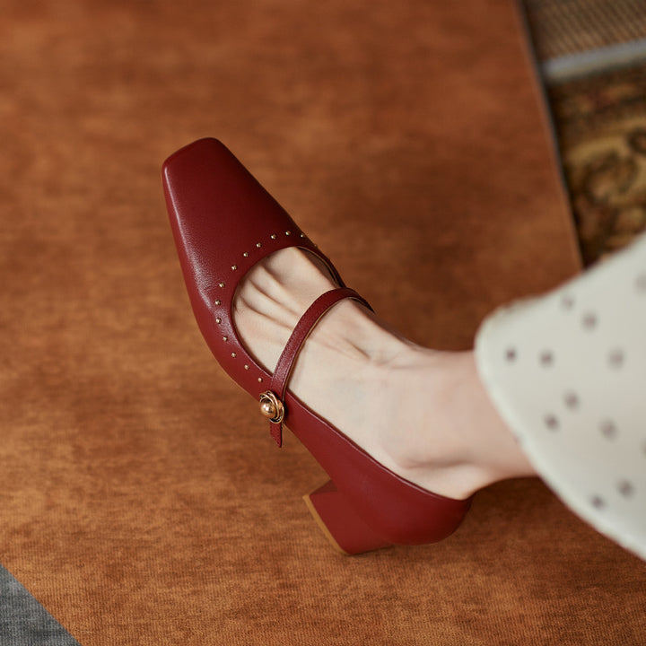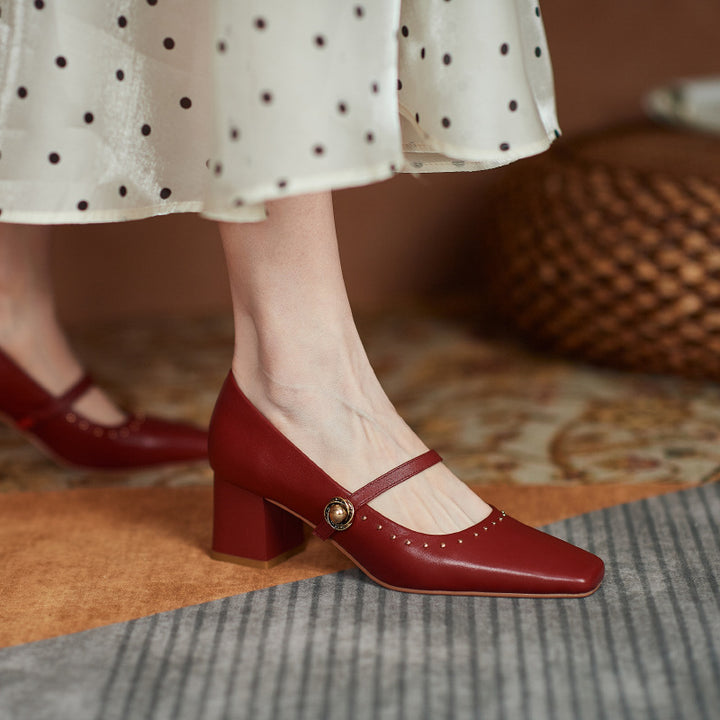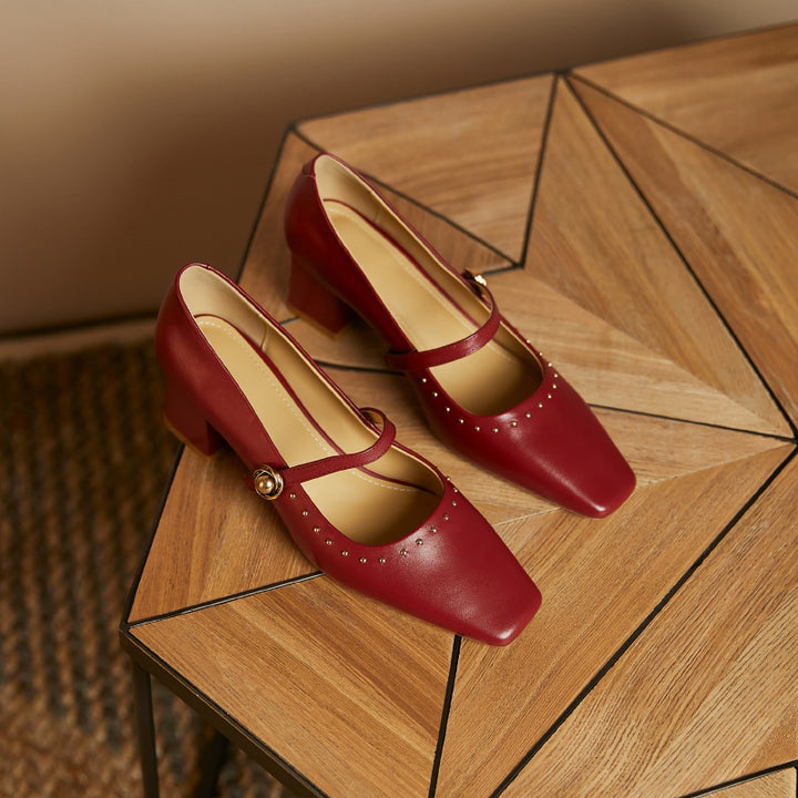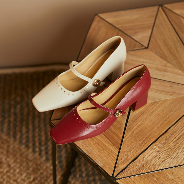 Compare Color Mary Janes Square Toe Chunky Heeled Pumps