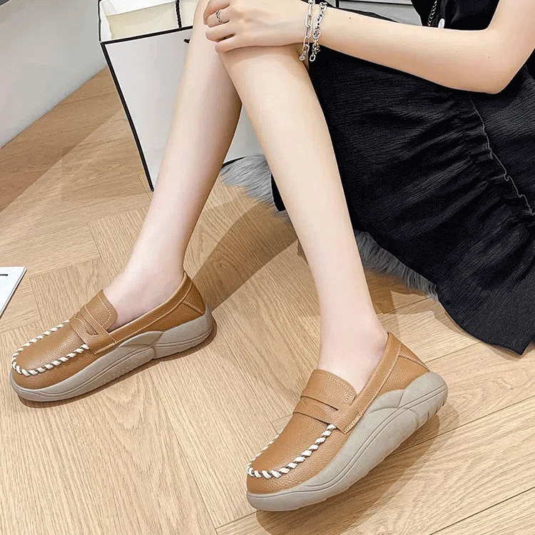 Experience unparalleled comfort, posture correction, and an instant height boost with our Leather Orthotic Loafers. Crafted from soft leather with a spongy, shock-absorbing sole, these stylish loafers provide an additional 5CM height, improving your posture and eliminating discomfort. The round toe design ensures a roomy, pressure-free fit, making them ideal for bunions, hallux valgus, and tailor’s bunion.