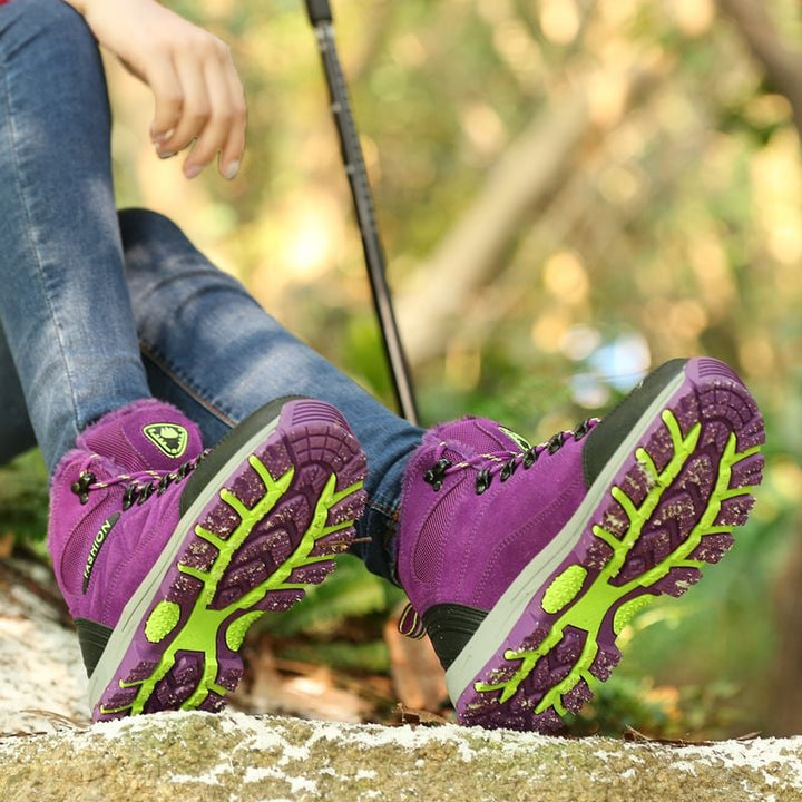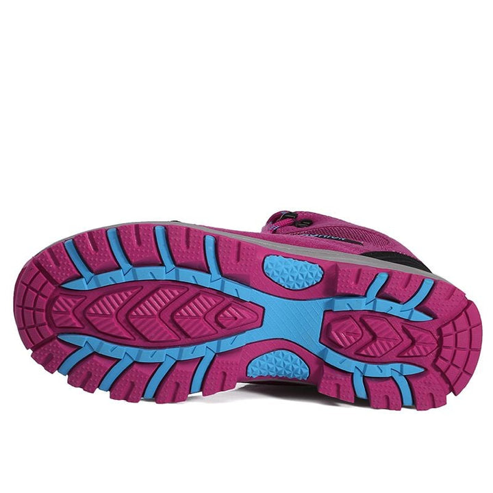 The boots are equipped with a rubber outsole and unique grip spikes, enhancing their traction capabilities. This ensures a smooth walking experience on various terrains, including trail running, hiking, outdoor exploration, or climbing.