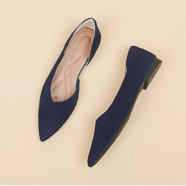 Refined tradition meets everyday elegance in our Knitted Flats. Handcrafted with care, this deep silk-blue pair features a classic Mary Jane silhouette with an adjustable strap and tonal piping for a seamless finish.