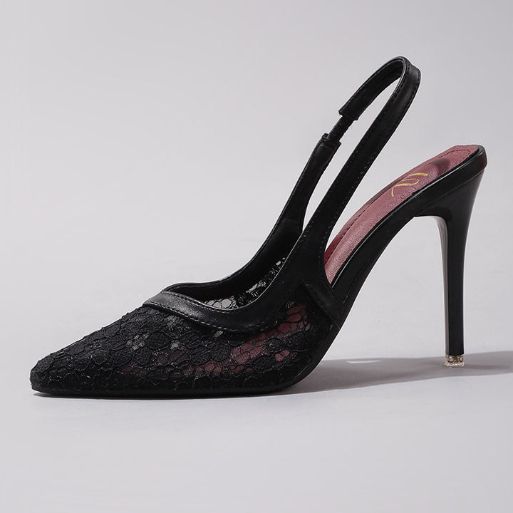 Crafted of Mesh fabric, these sling back heels feature a comfortable leather lining and footbed.