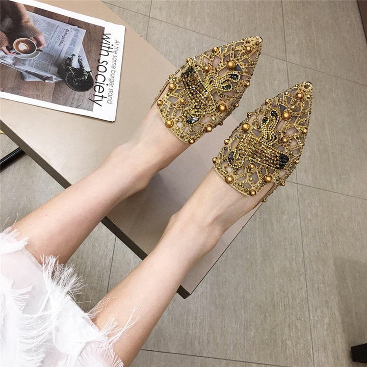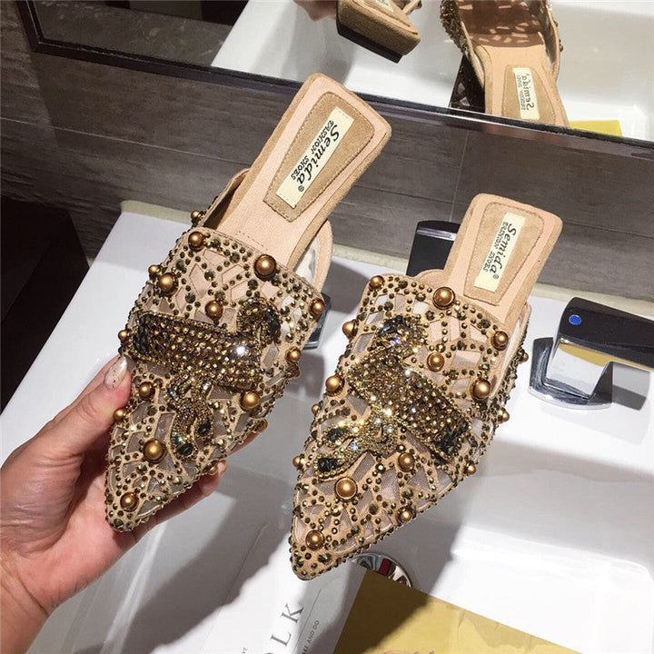 Product name:Mesh Hollow-out Flat Bottom Low Heel Slippers Product category: Baotou Applicable age group: adulthood Style: leisure Upper material: velvet Color: khaki, black Function: breathable, non -slip, wear resistance