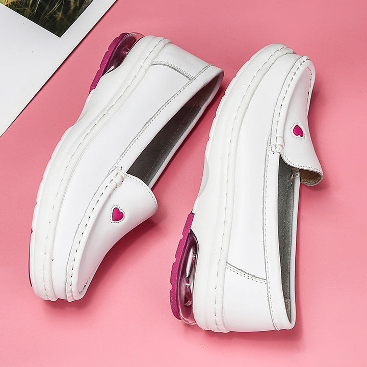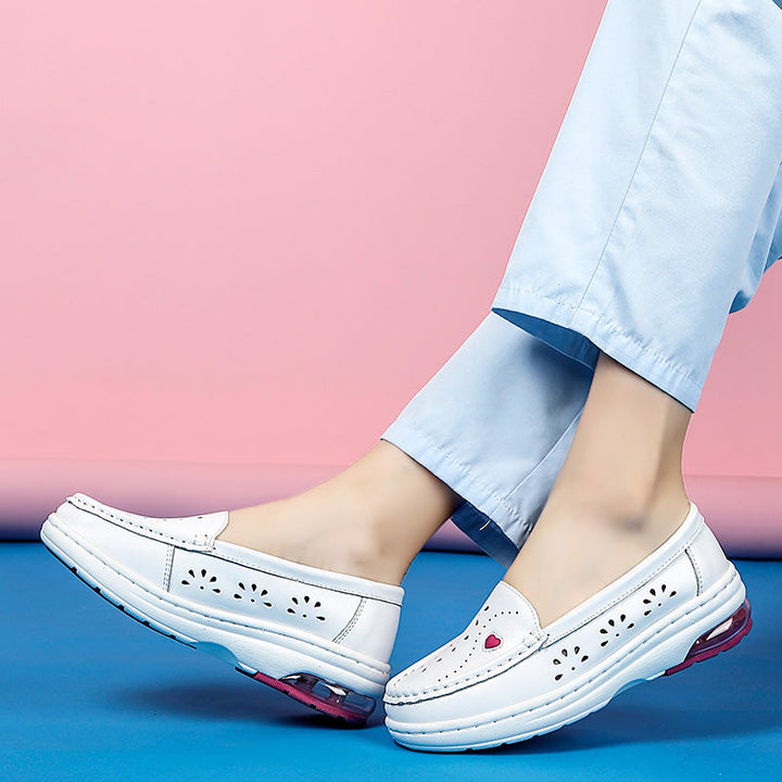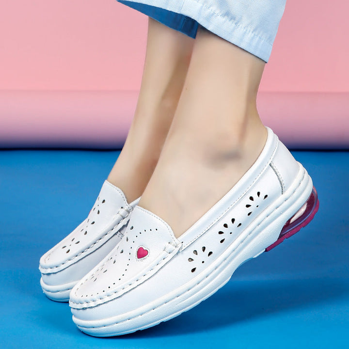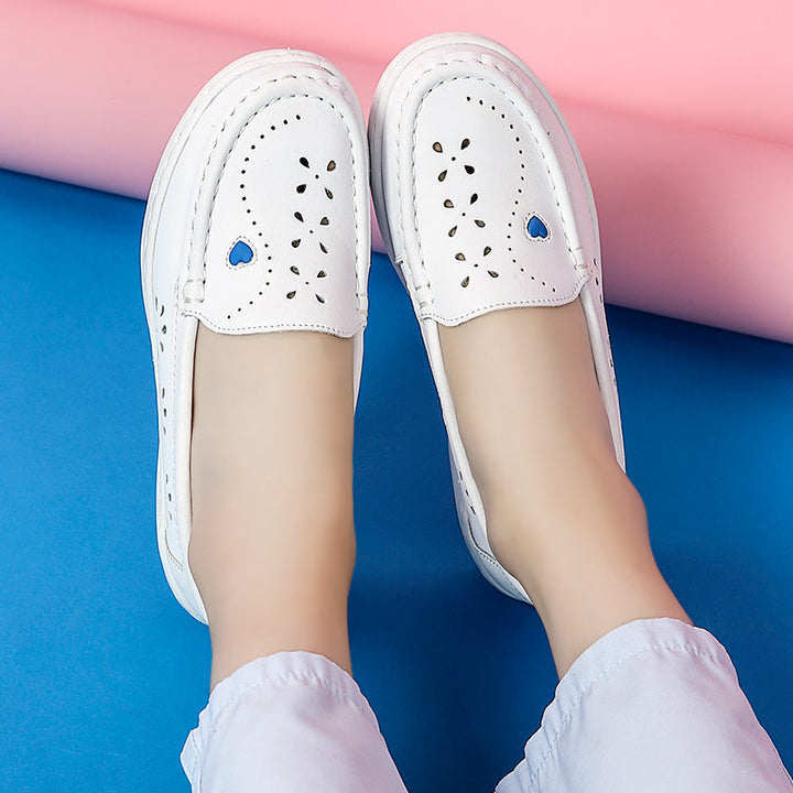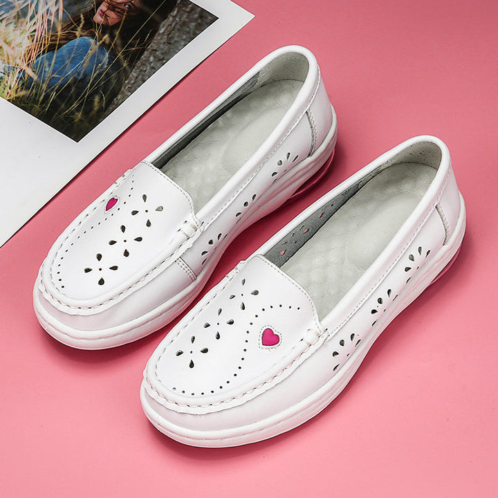 【Leather Upper & Heart-shaped Charms】These comfortable shoes for women with leather upper and cutouts keep your feet breathable and cool, unique heart-shaped charm offers you in great style.