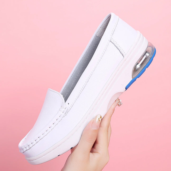 【Round Toe & Sip-on】Classic white shoes connected round toe and Slip on design,easy to on and off and protect your feet.