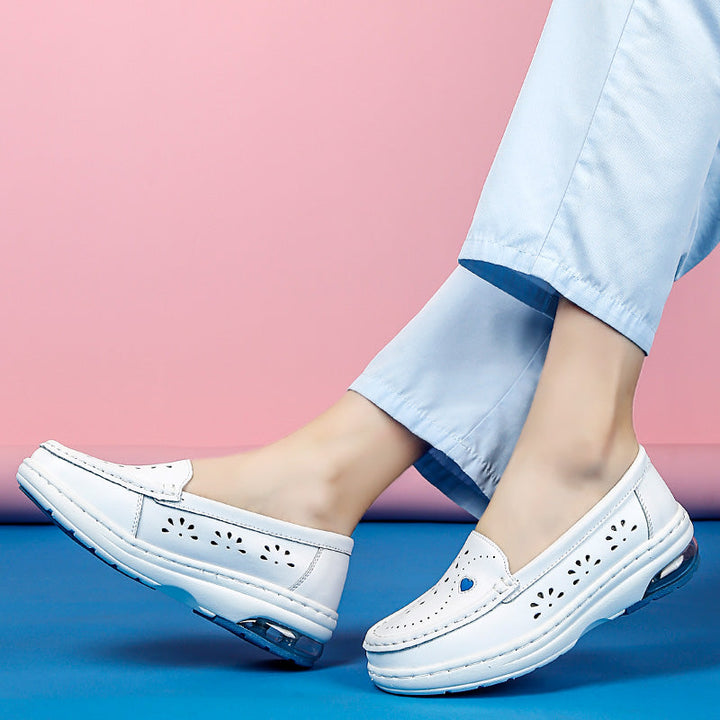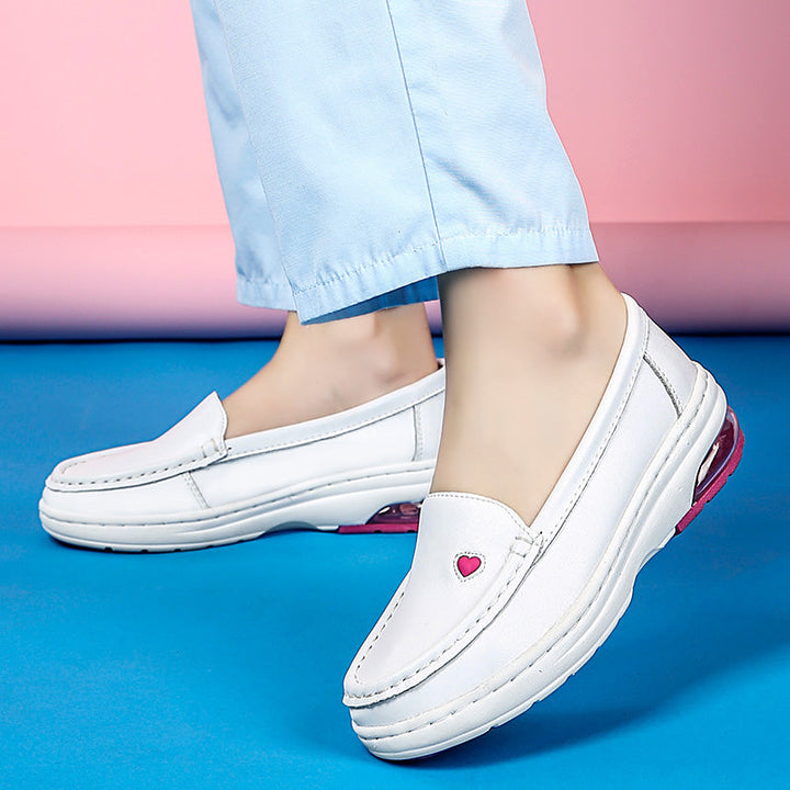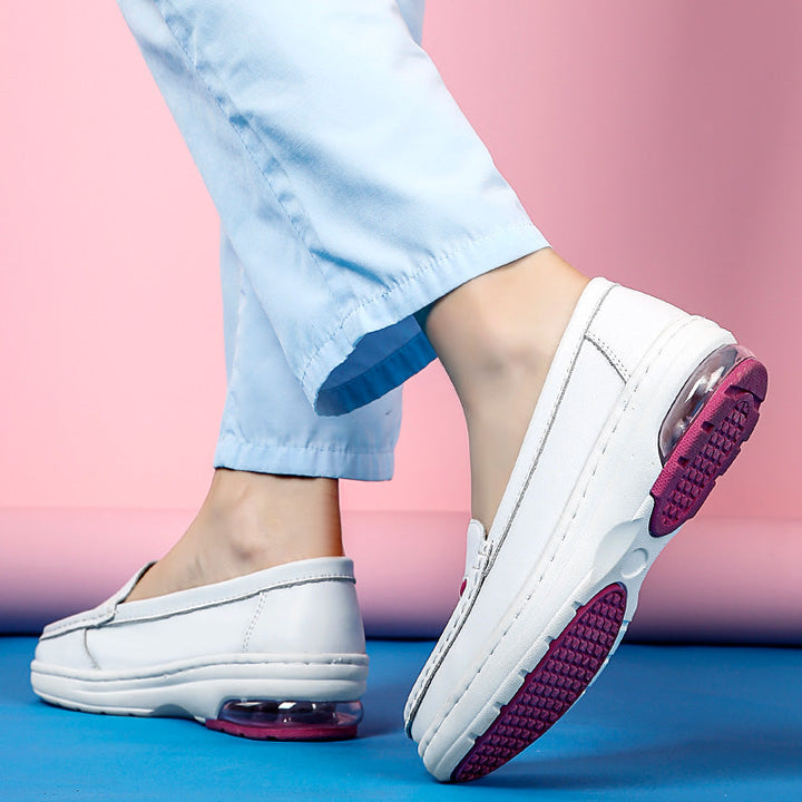 【Air Cushion & Latex Insoles】Air cushion with 1.75" heel height outsole connected latex arch support insoles, these womens work shoes is the best gifts for nurses, doctor, and dental for standing all day.