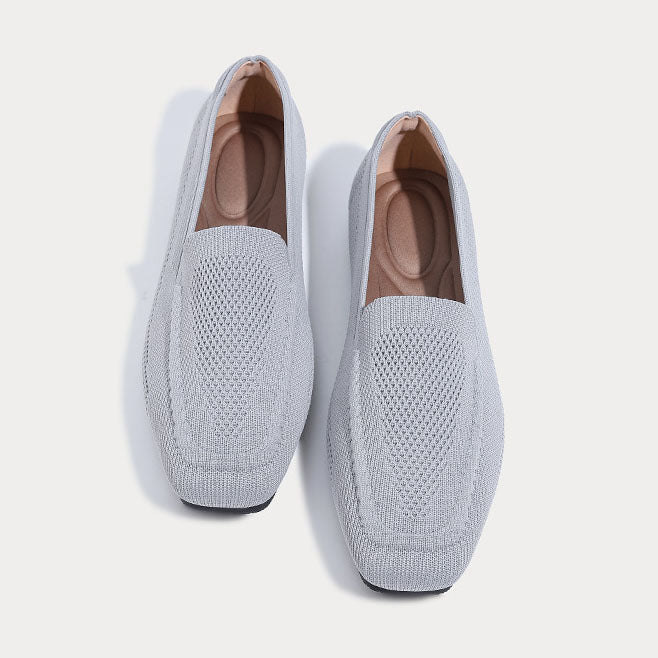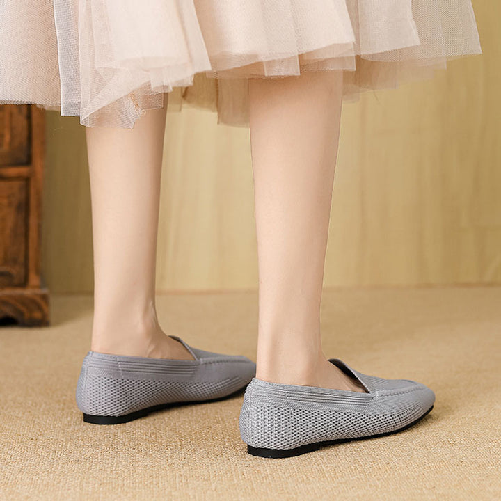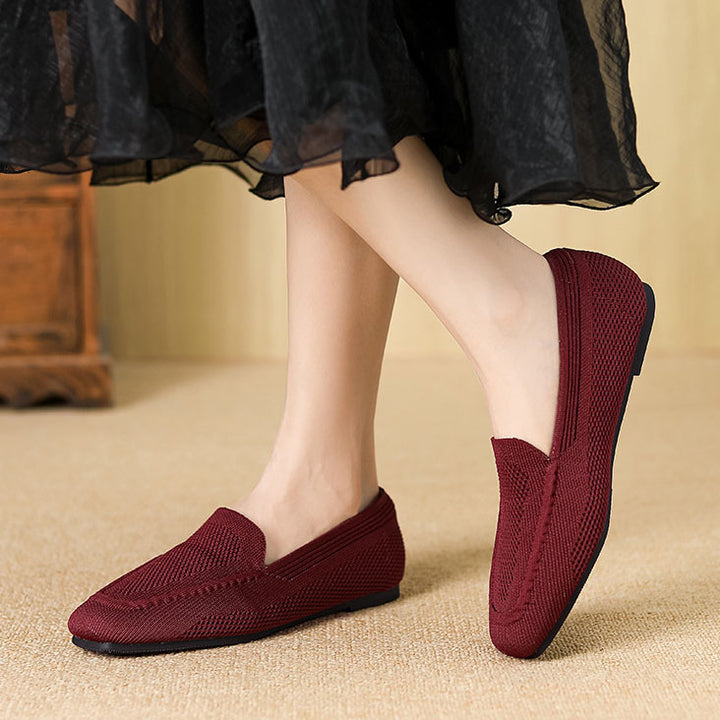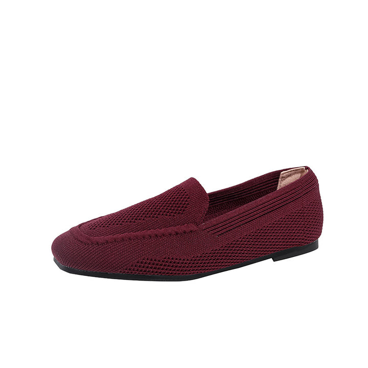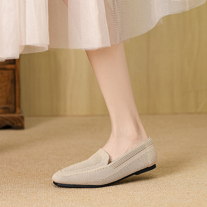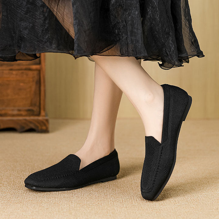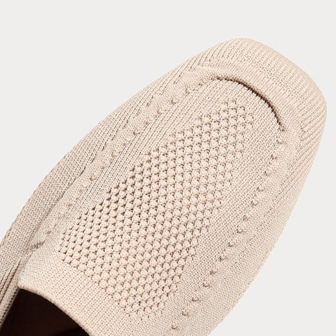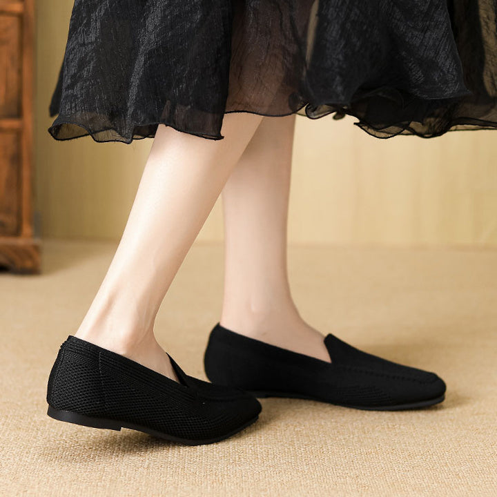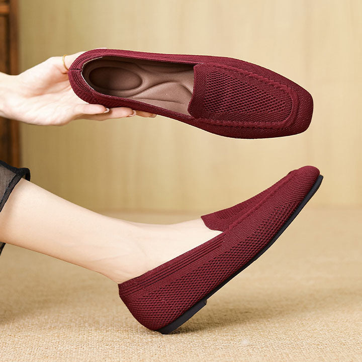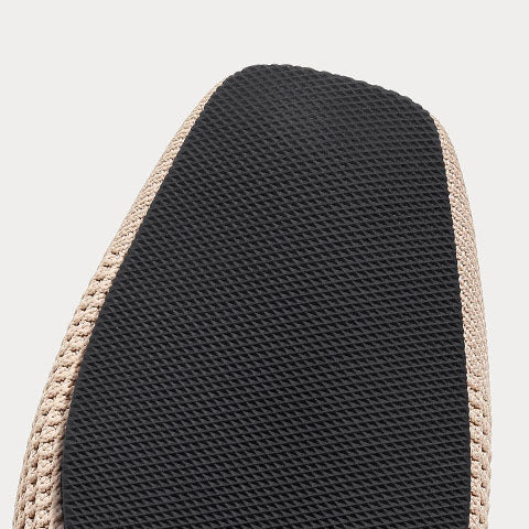 slightly raised heel, easy slip-on shape.knitted woven upper and with a light non - slip rubber sole.