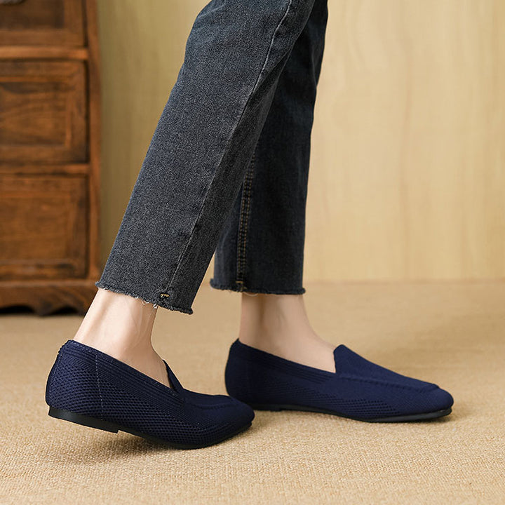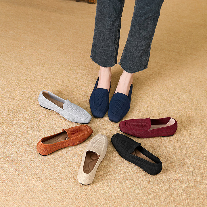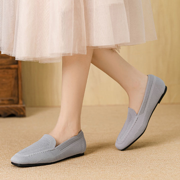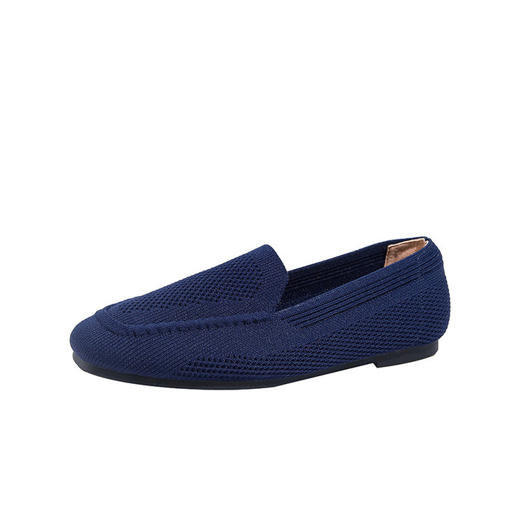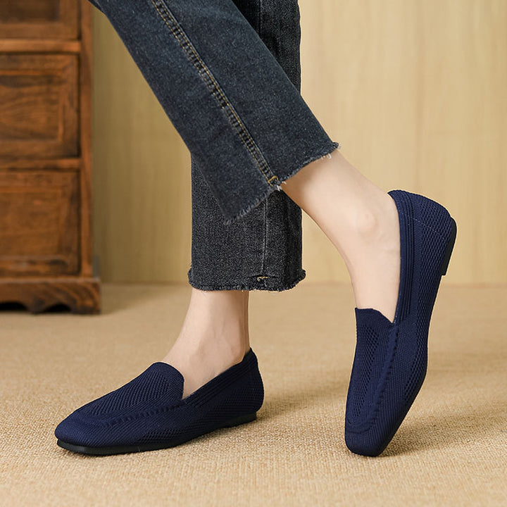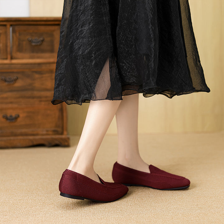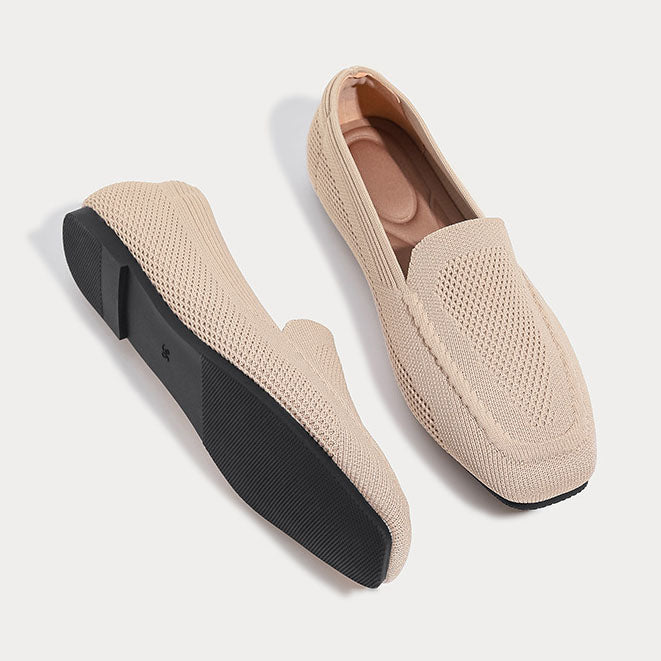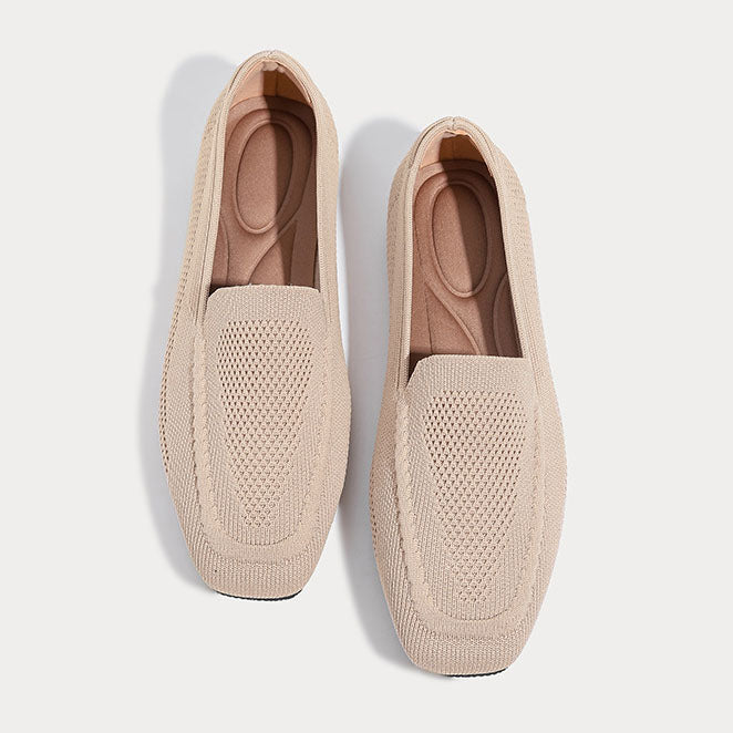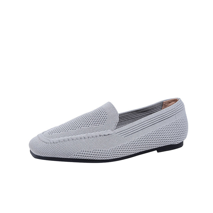 slightly raised heel, easy slip-on shape.knitted woven upper and with a light non - slip rubber sole.