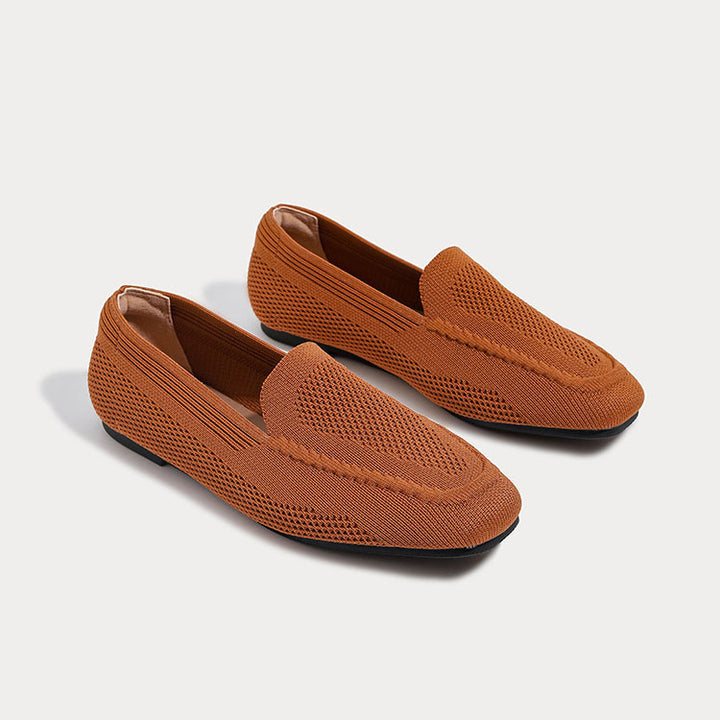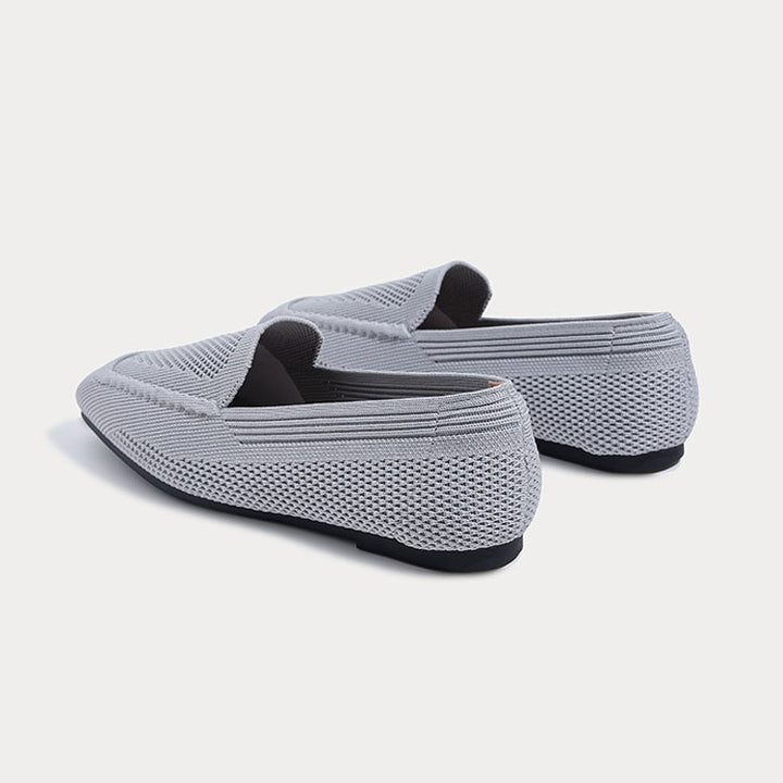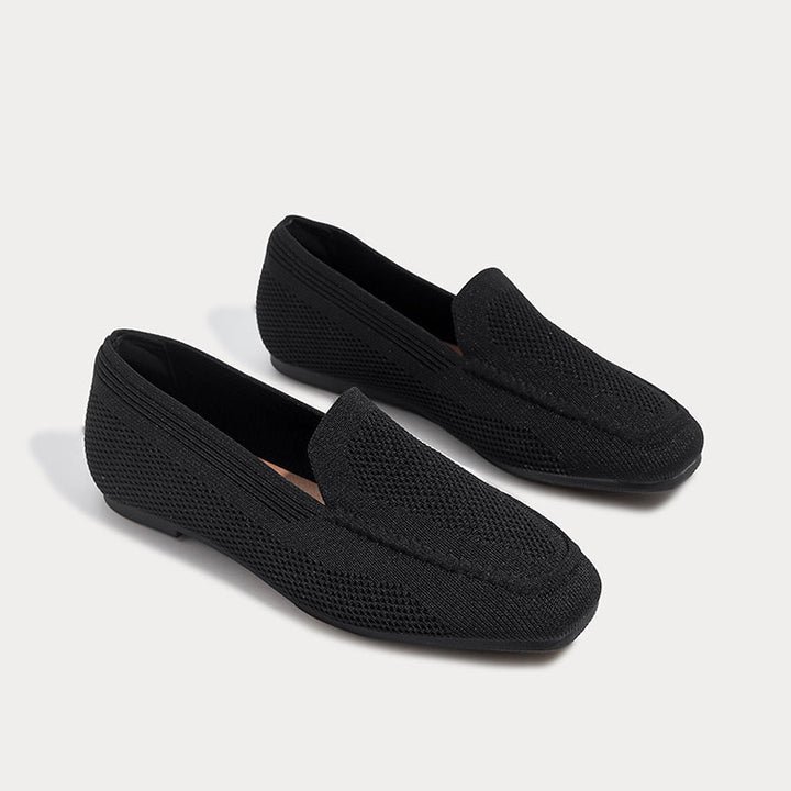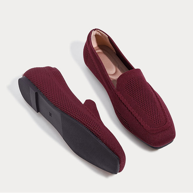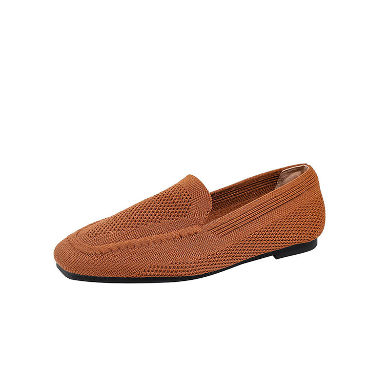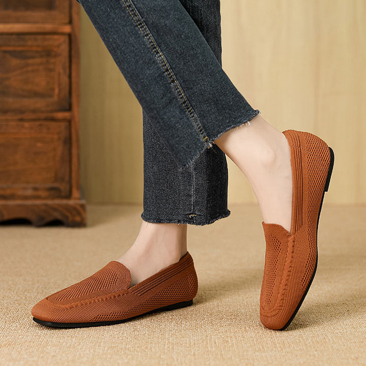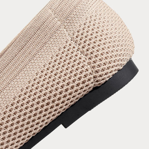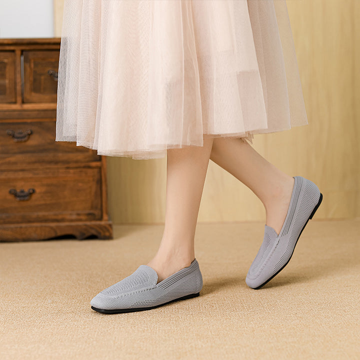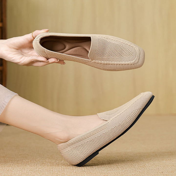slightly raised heel, easy slip-on shape.knitted woven upper and with a light non - slip rubber sole.