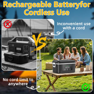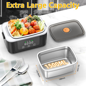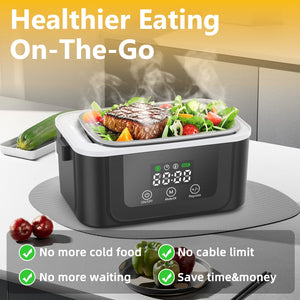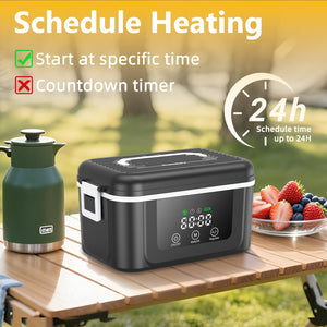 This 1.5L cordless electric lunch box features an 18000mAh rechargeable battery and smart scheduled heating system, allowing you to warm meals conveniently at work, during travel, or while camping. The digital display provides real-time control for a more personalized dining experience anywhere.