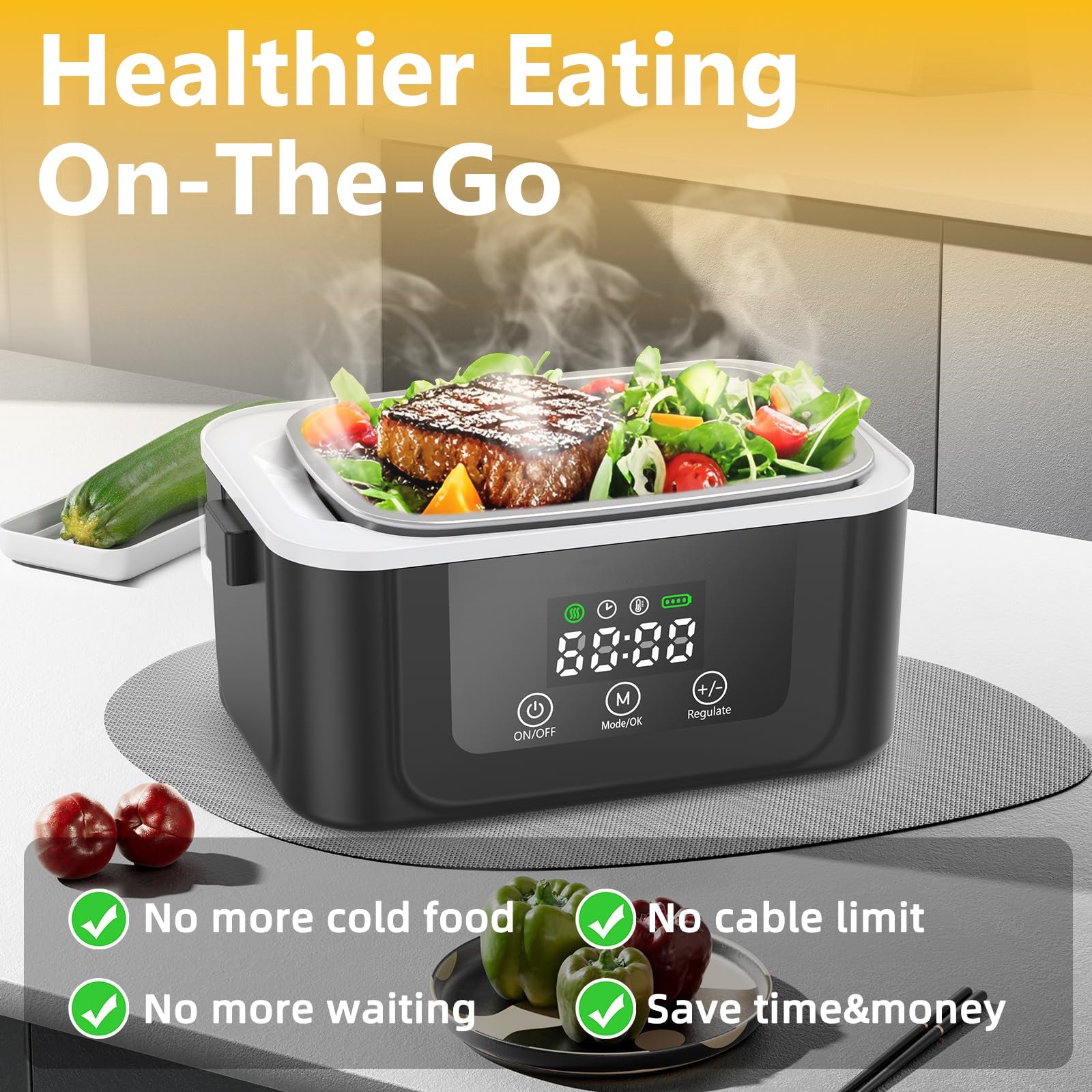Rechargeable Heated Lunch Box with Digital Display
