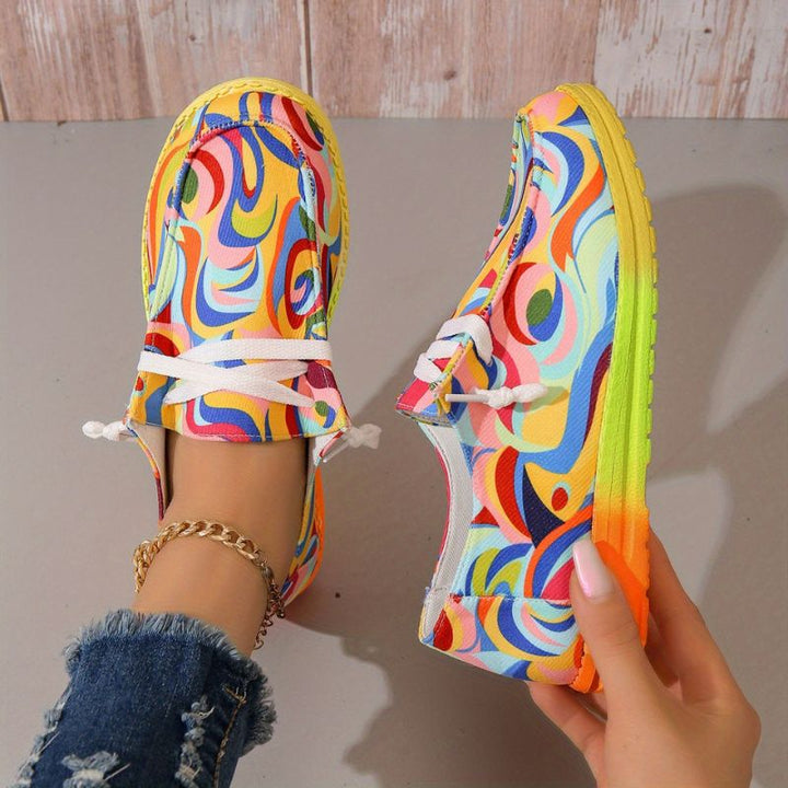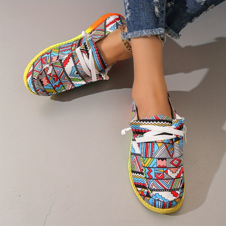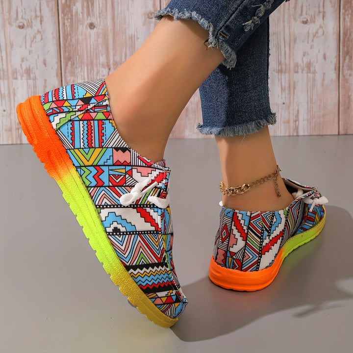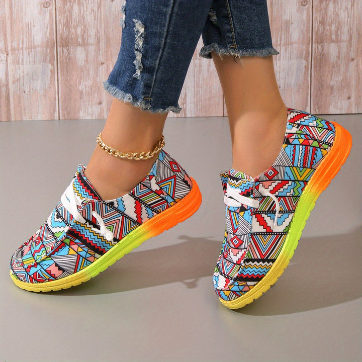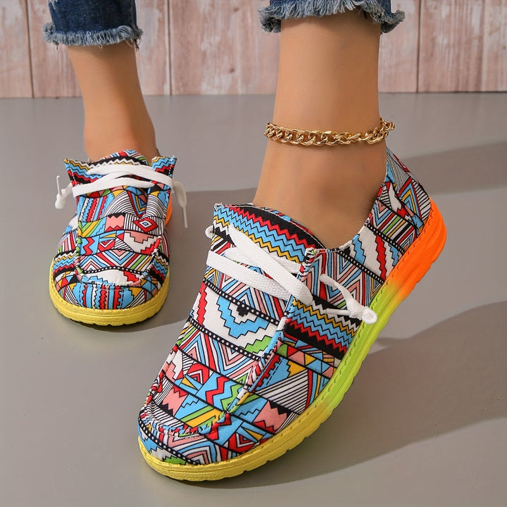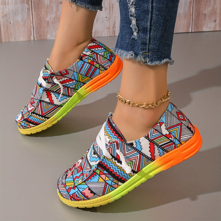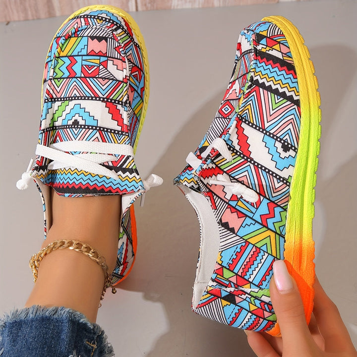 Capture your style with these Women's Canvas Shoes featuring a Colors Geometric Pattern.