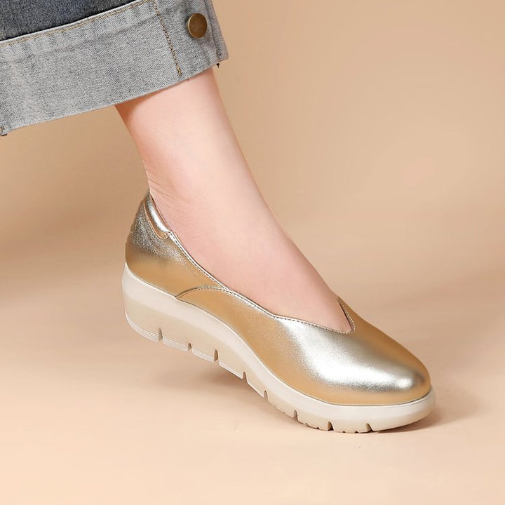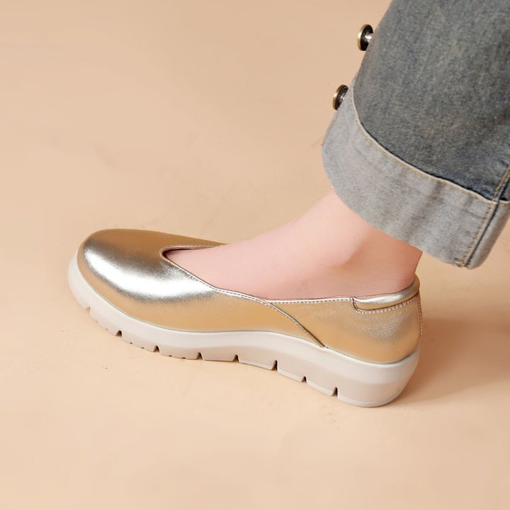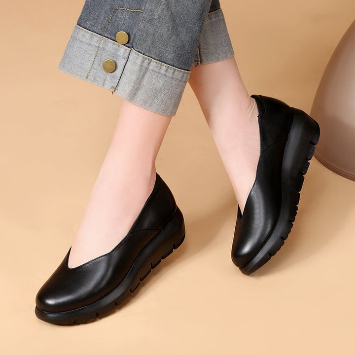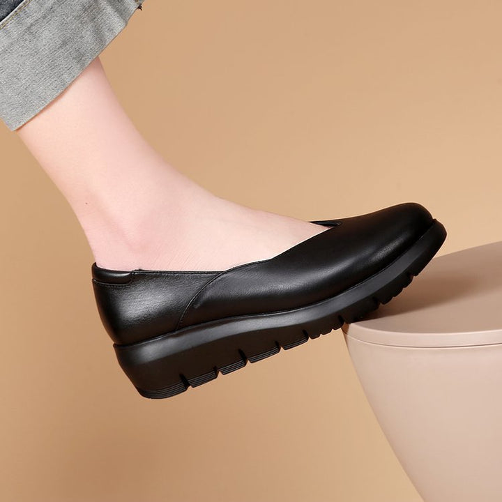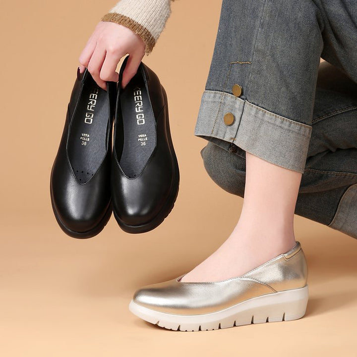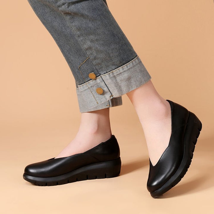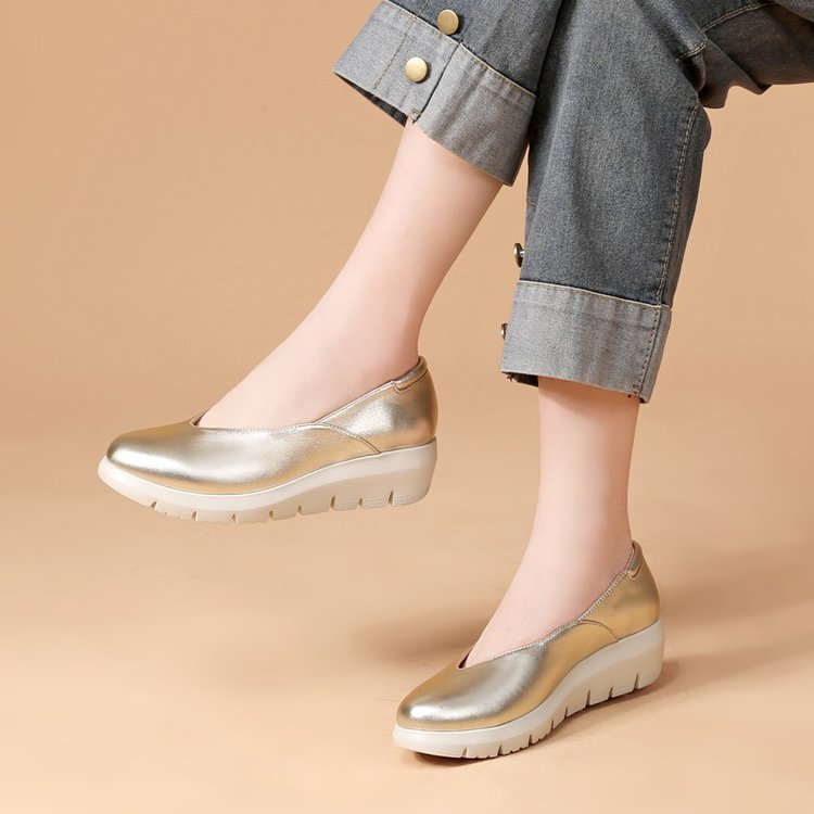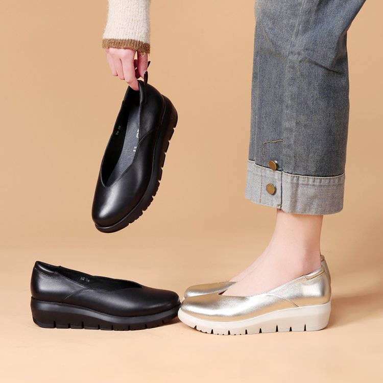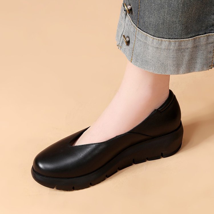 Simple shoes upper, removable insole, light wedge heel, soft Italian sheepskin, specially designed for women who need to work while standing for long time.