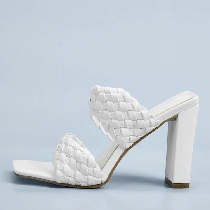 Solid Weave Strap Sandals Open Toe High Heels