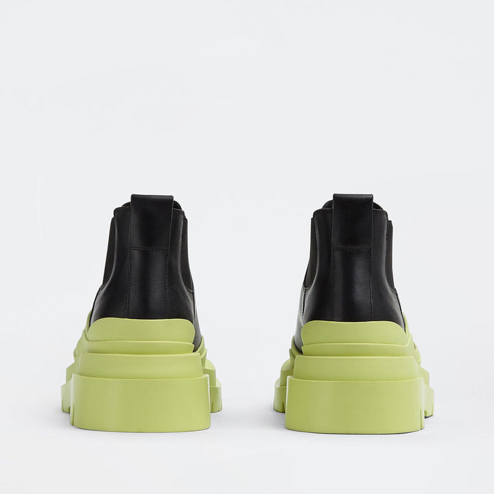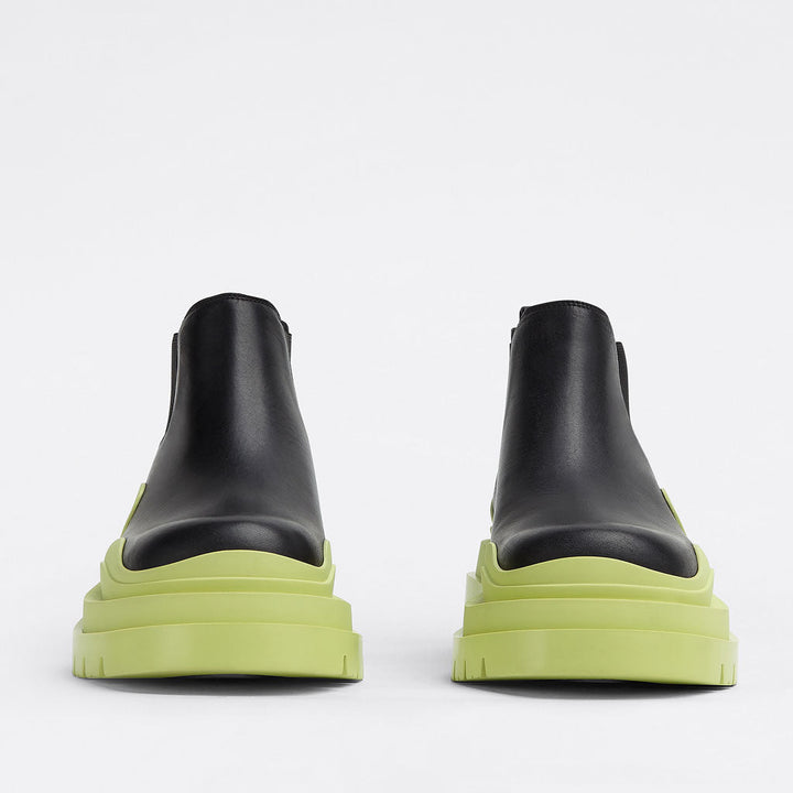 This pair of Chelsea boots lends a subtle pop of color without overpowering the rest of your outfit. Crafted with PU leather, acrylic and rubber, embellished with extra thick, serrated lug rubber soles that extend around the feet to enhance the chunky profile, featuring an ankle height silhouette with a slip-on styling and round toes to the front. Find more unique women's boots and trendy shoes in our boutique, and fall dresses feel decidedly cooler with these color block boots - Heel height: 5 cm.