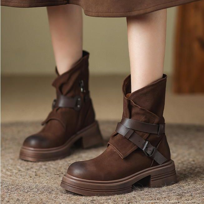 Step into style with Nordisk-Flair's Women’s Mid-Calf Boots – Slouchy Fit – Buckle Straps – Lug Sole – Low Block Heel. These chic boots offer a relaxed, on-trend look with buckle detailing and a sturdy lug sole for all-day comfort and confident strides.