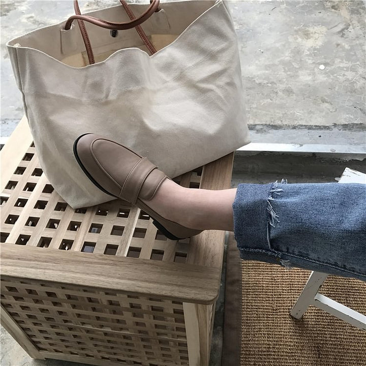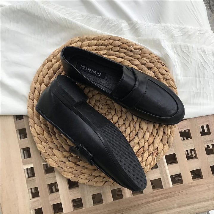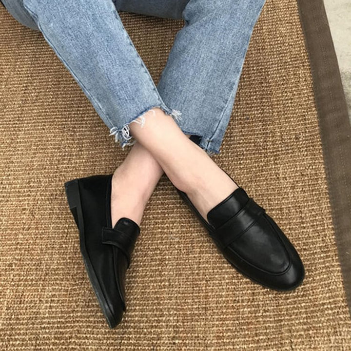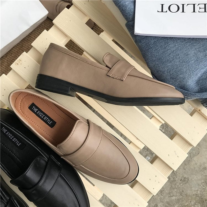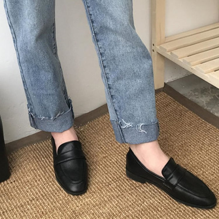 Women Vintage Slip On Loafers Low Heel PU Leather Loafers
