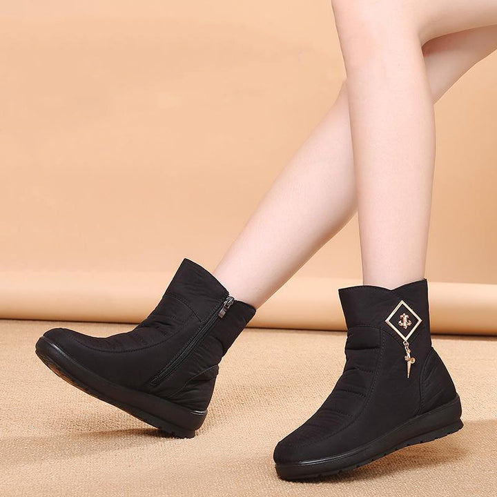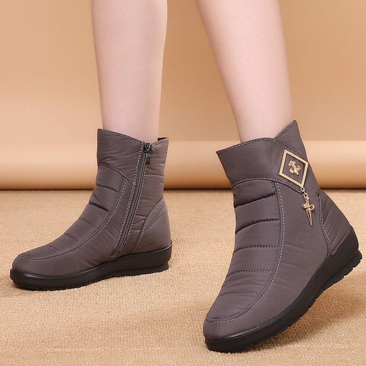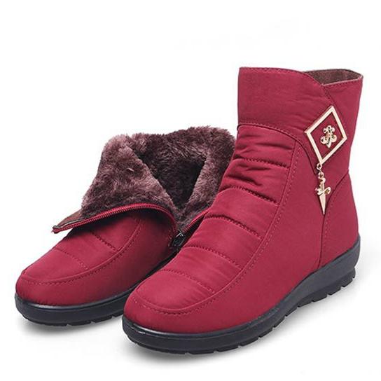 Item Type: Boots Gender: Women Toe Shape: Round toe Heel Height: 3cm Lining material: Faux fur Closure Type: Zipper Color: Red, Blue, Black, Gray, Brown Season: Winter Occasion: Casual/Daily
