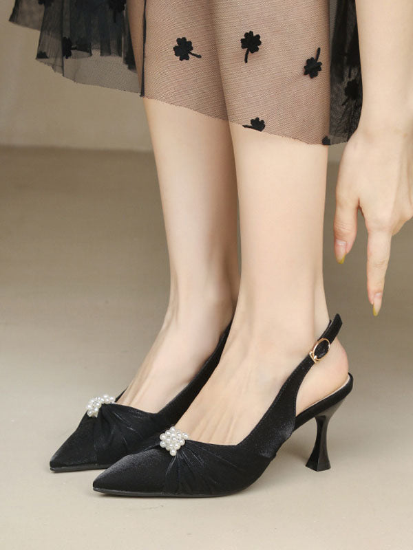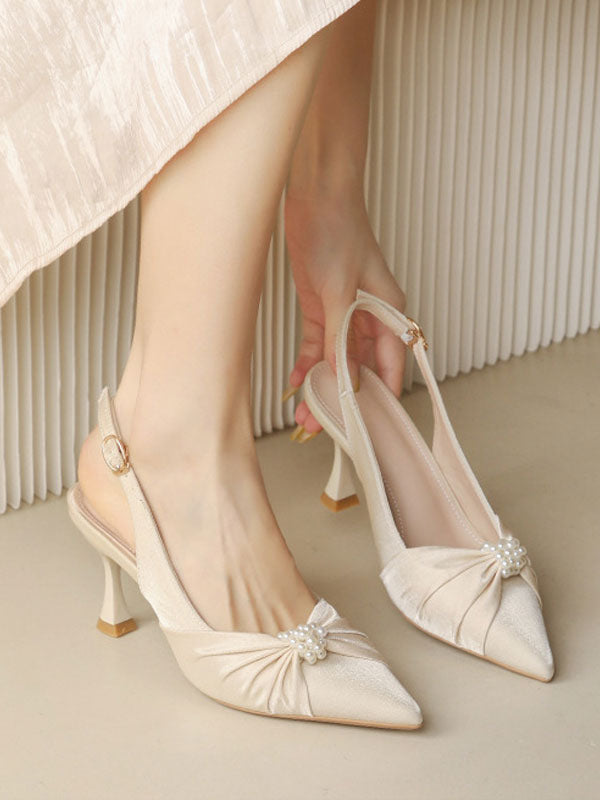 Women's Bridal Shoes Pointed Toe Pearls Goblet Heel Slingbacks Wedding Shoes
