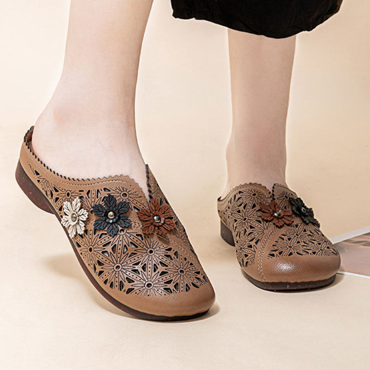 Package Included: 1 * Women's Elegant PU Leather Slide Sandals with Floral Design