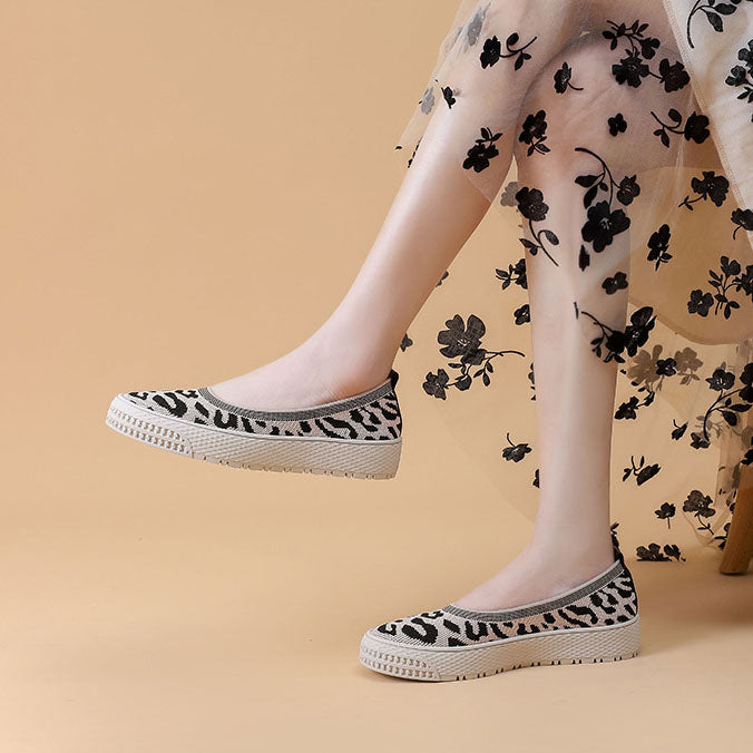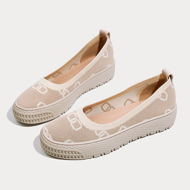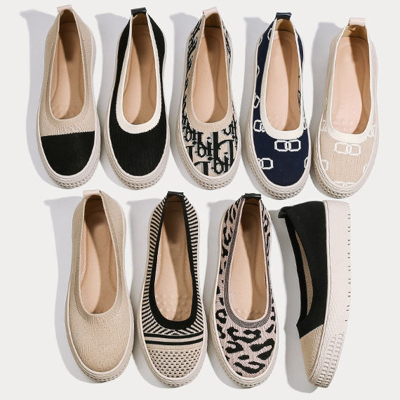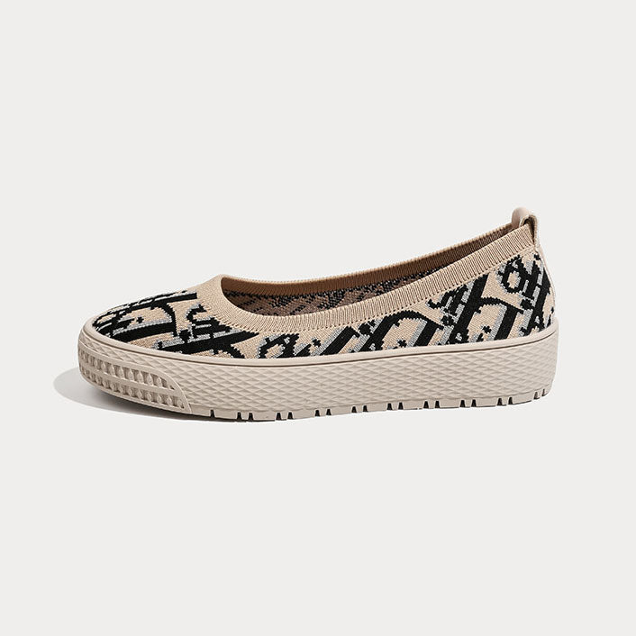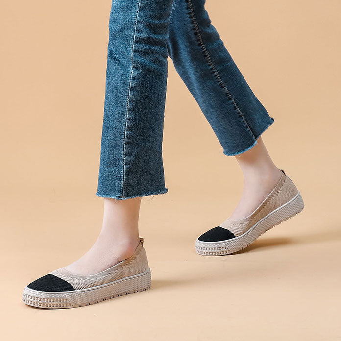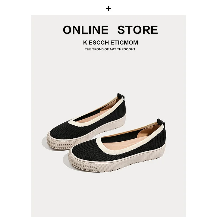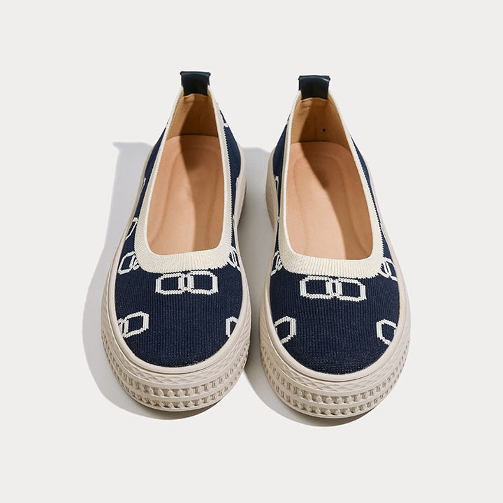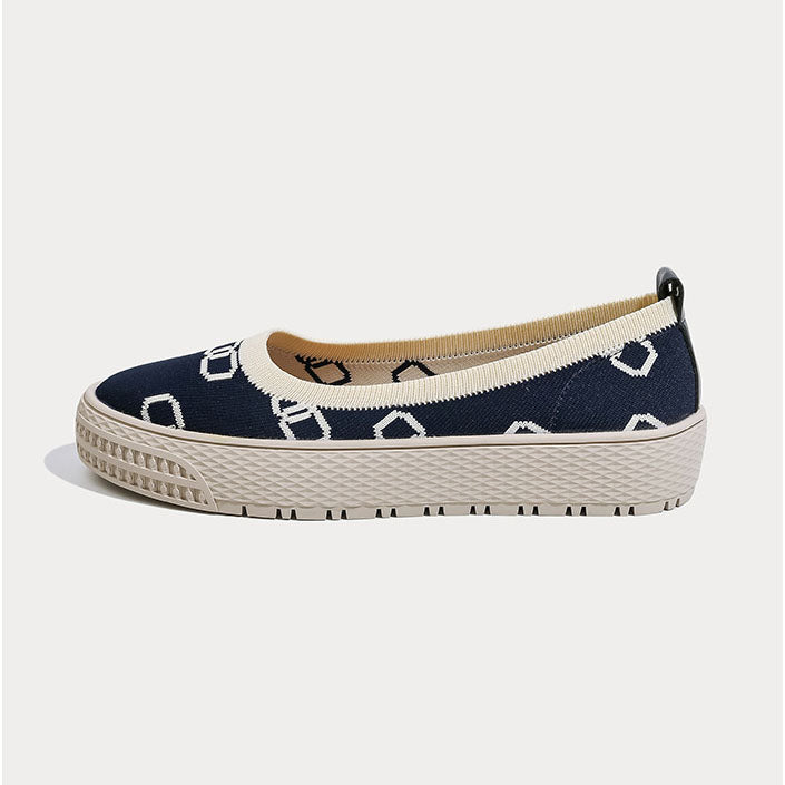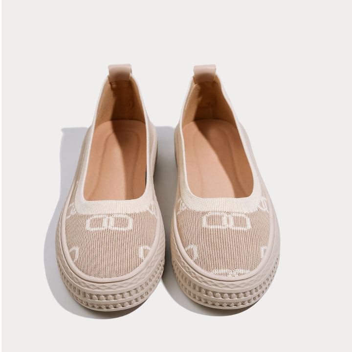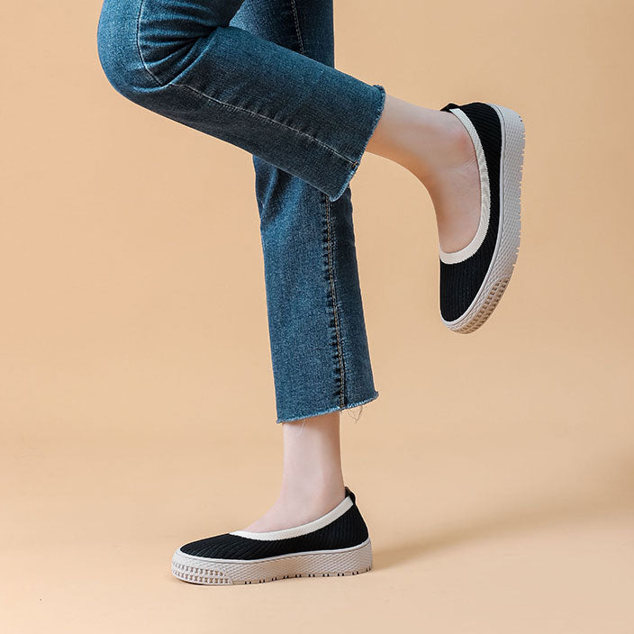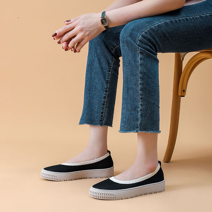 Women's Thick Bottom Casual Knitted Shoes Round Toe Loafers